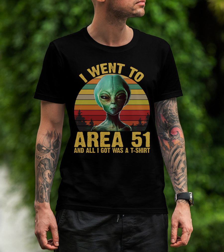 The I Went To Area 51 And All I Got Was A T-Shirt With Funny Alien Retro Sunset T-shirt is designed for everyday wear and a consistent fit. Fabric is pre-shrunk ring-spun cotton with durable stitching. See the size chart below for exact measurements.