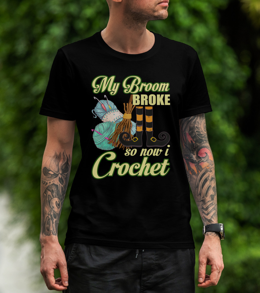 Crocheting Witch Humor: My Broom Broke, Time For Yarn Fun On Halloween T-Shirt