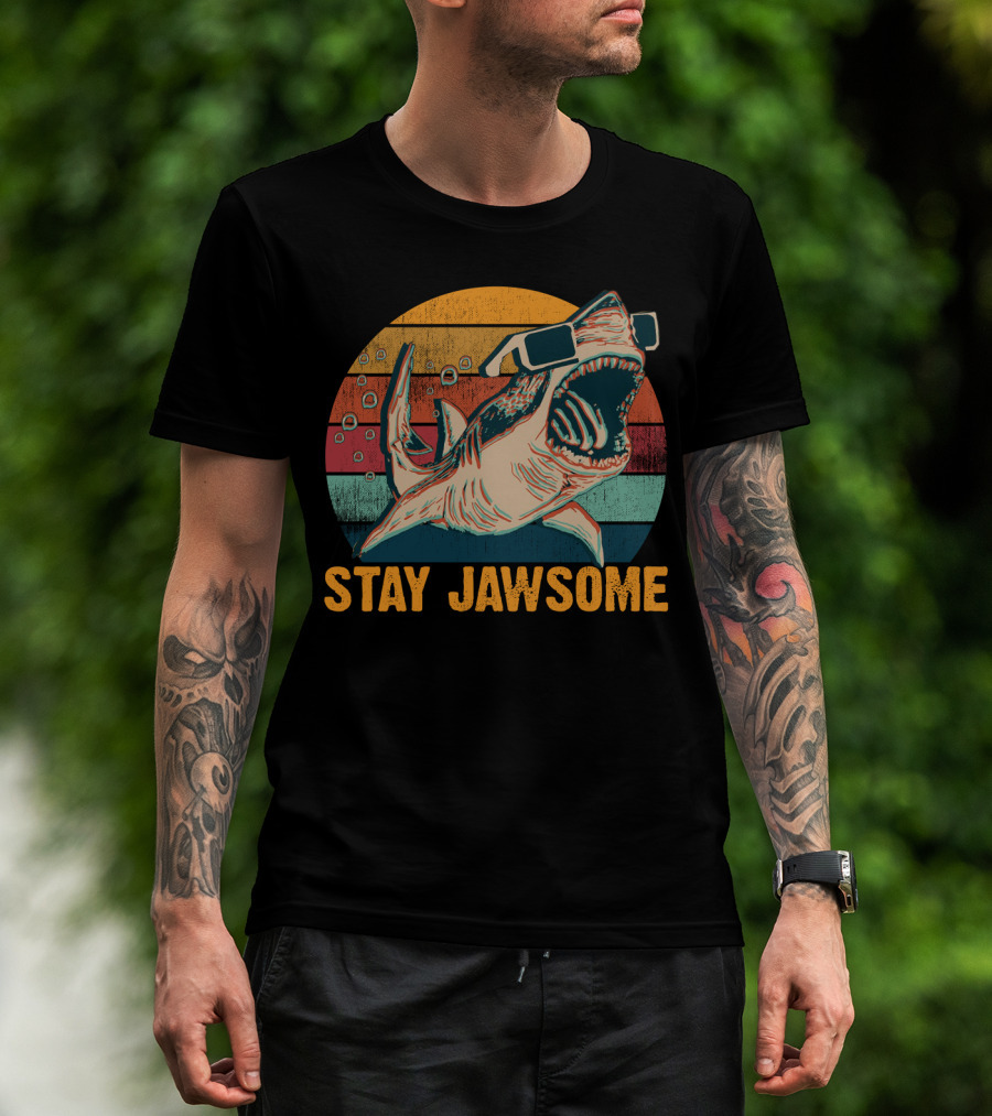 The Stay Jawsome Vintage Shark Week Sunglasses Retro Shark Lovers T-shirt is designed for everyday wear and a consistent fit. Fabric is pre-shrunk ring-spun cotton with durable stitching. See the size chart below for exact measurements.