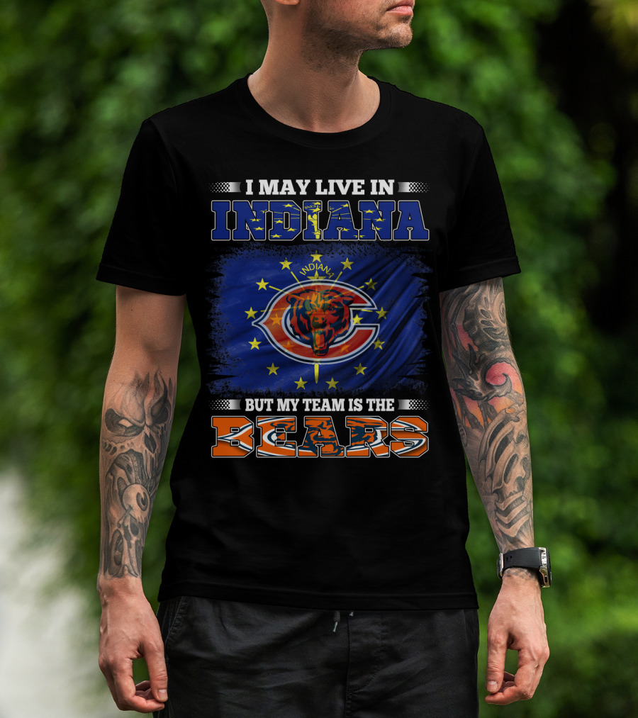I May Live In Indiana But My Team Is The Bears Indiana Flag And Bears T-Shirt