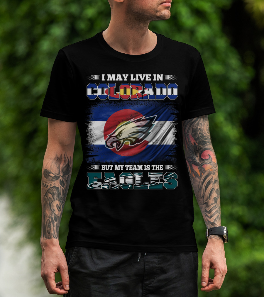 I May Live In Colorado But My Team Is The Eagles Colorado Flag Background T-Shirt