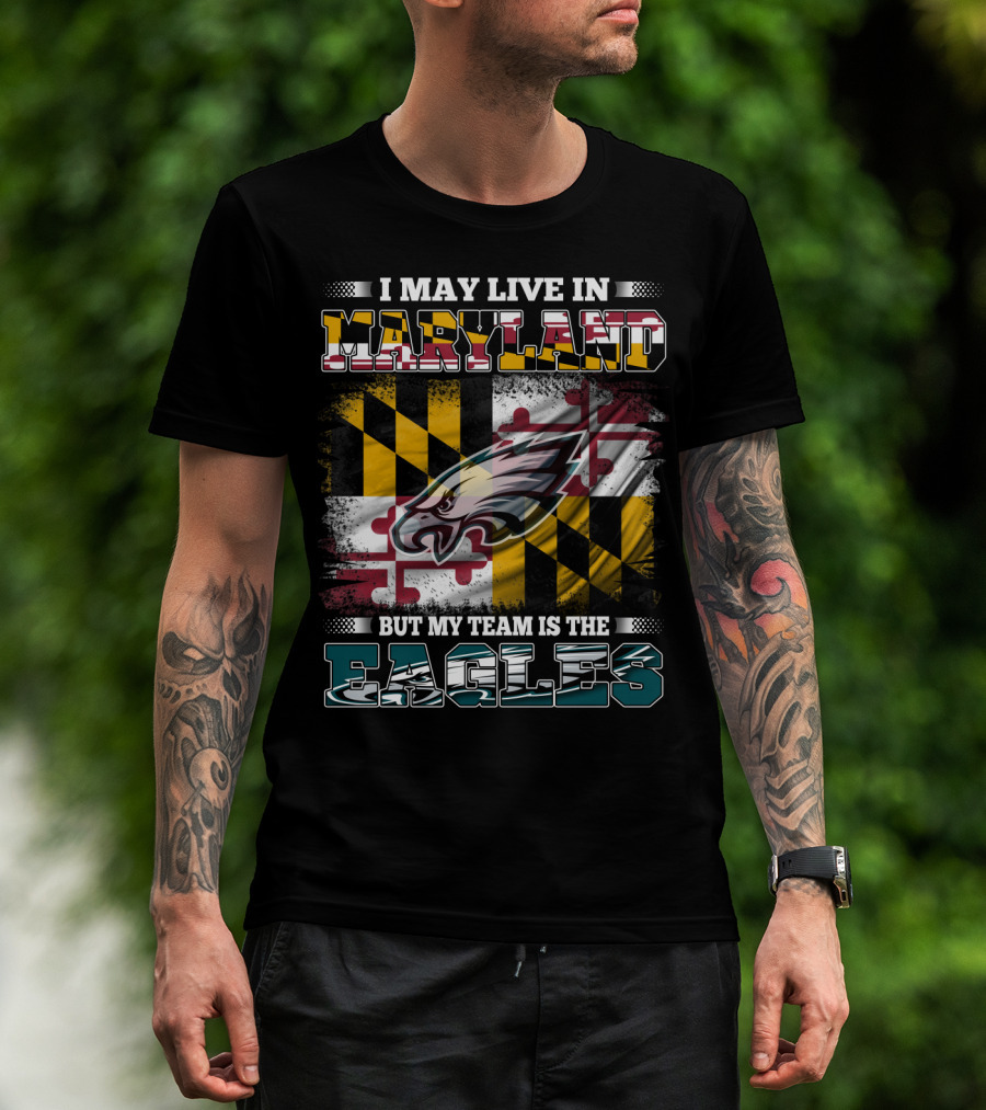 I May Live In Maryland But My Team Is The Eagles Flag Background T-Shirt