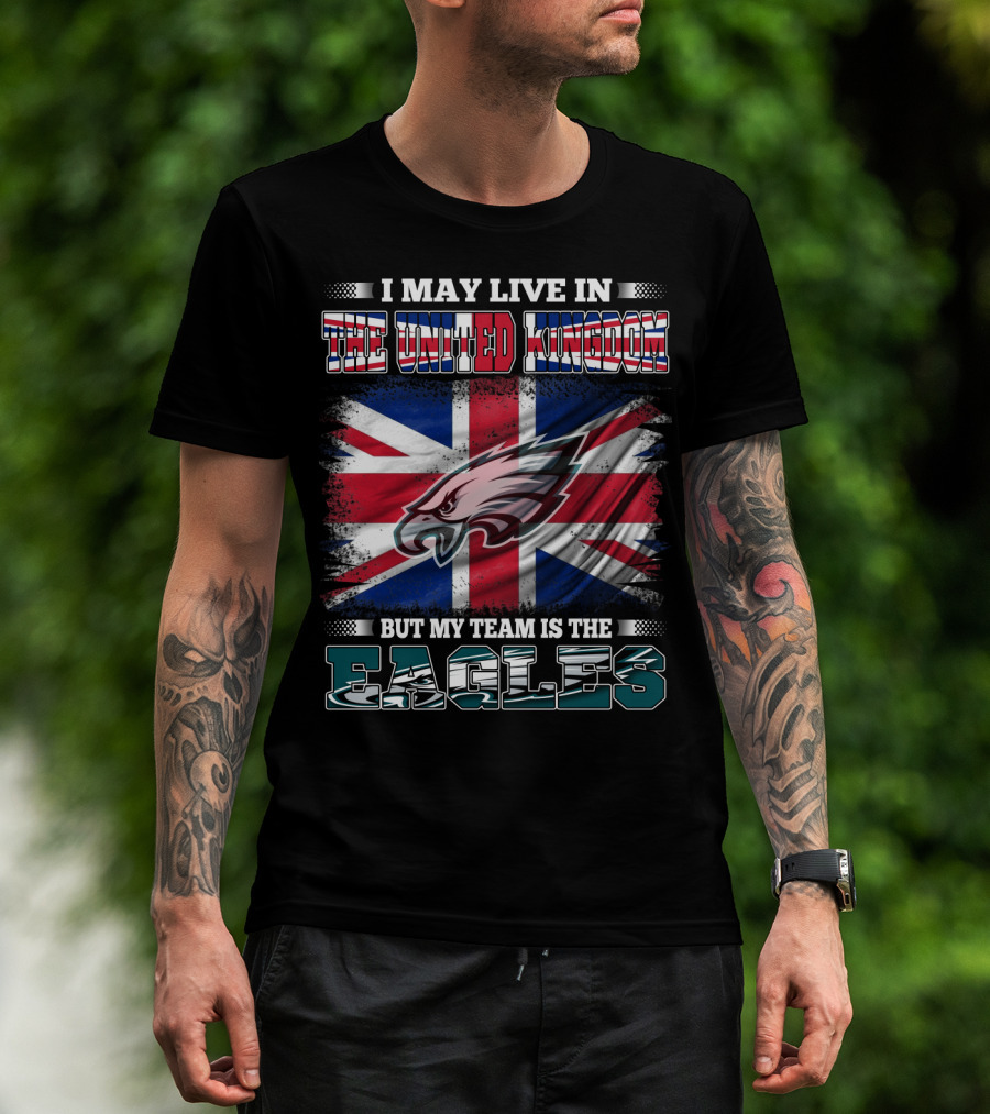I May Live In The United Kingdom But My Team Is The Eagles Union Jack Flag Background T-Shirt