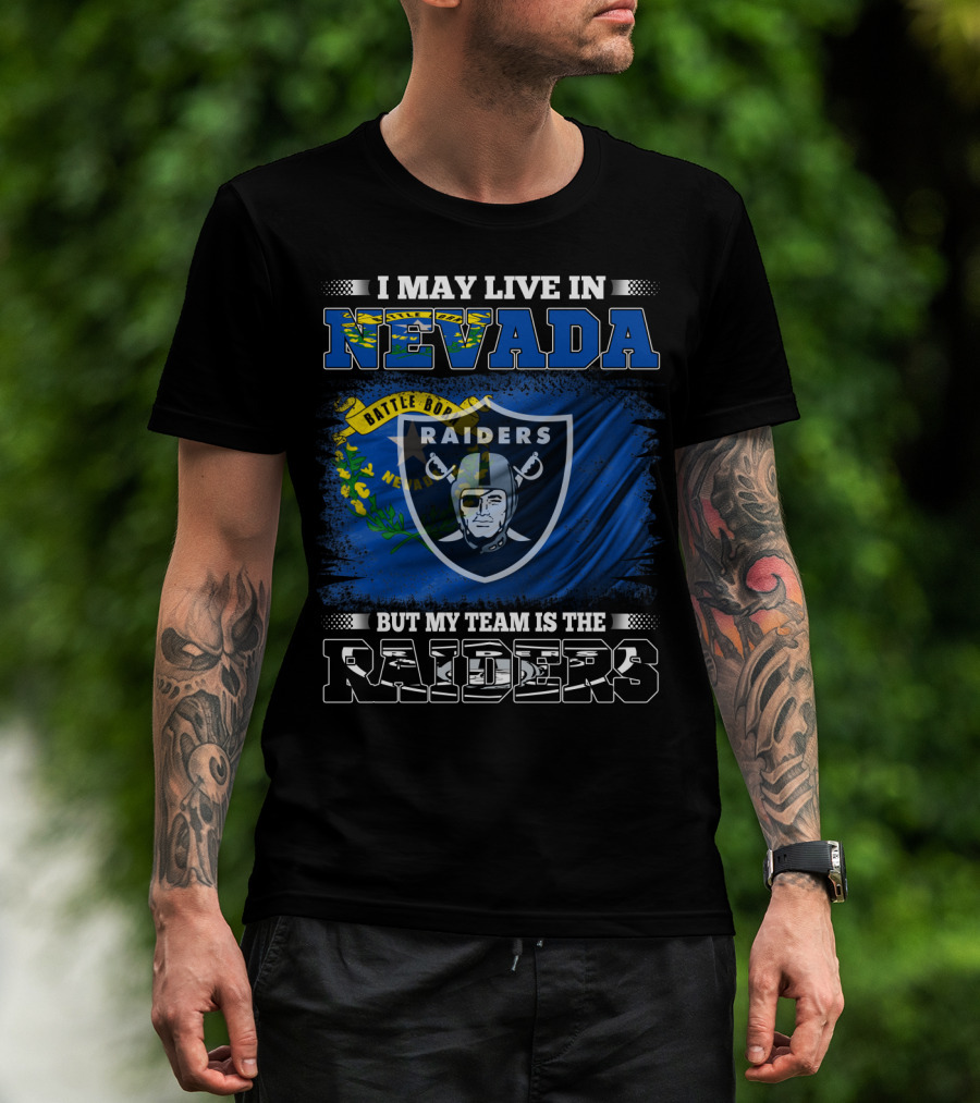 I May Live In Nevada Battle Born But My Team Is The Raiders T-Shirt
