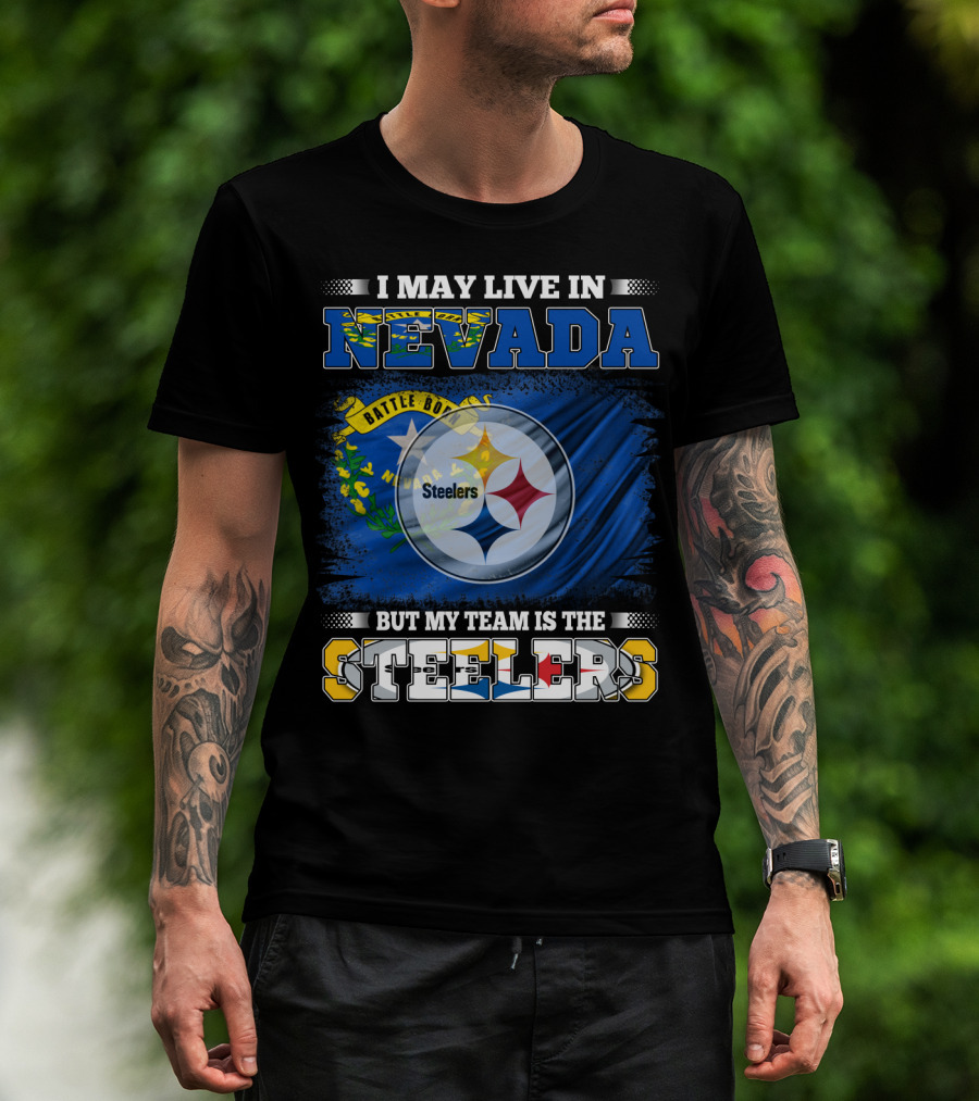 I May Live In Nevada But My Team Is The Steelers Battle Born Flag T-Shirt