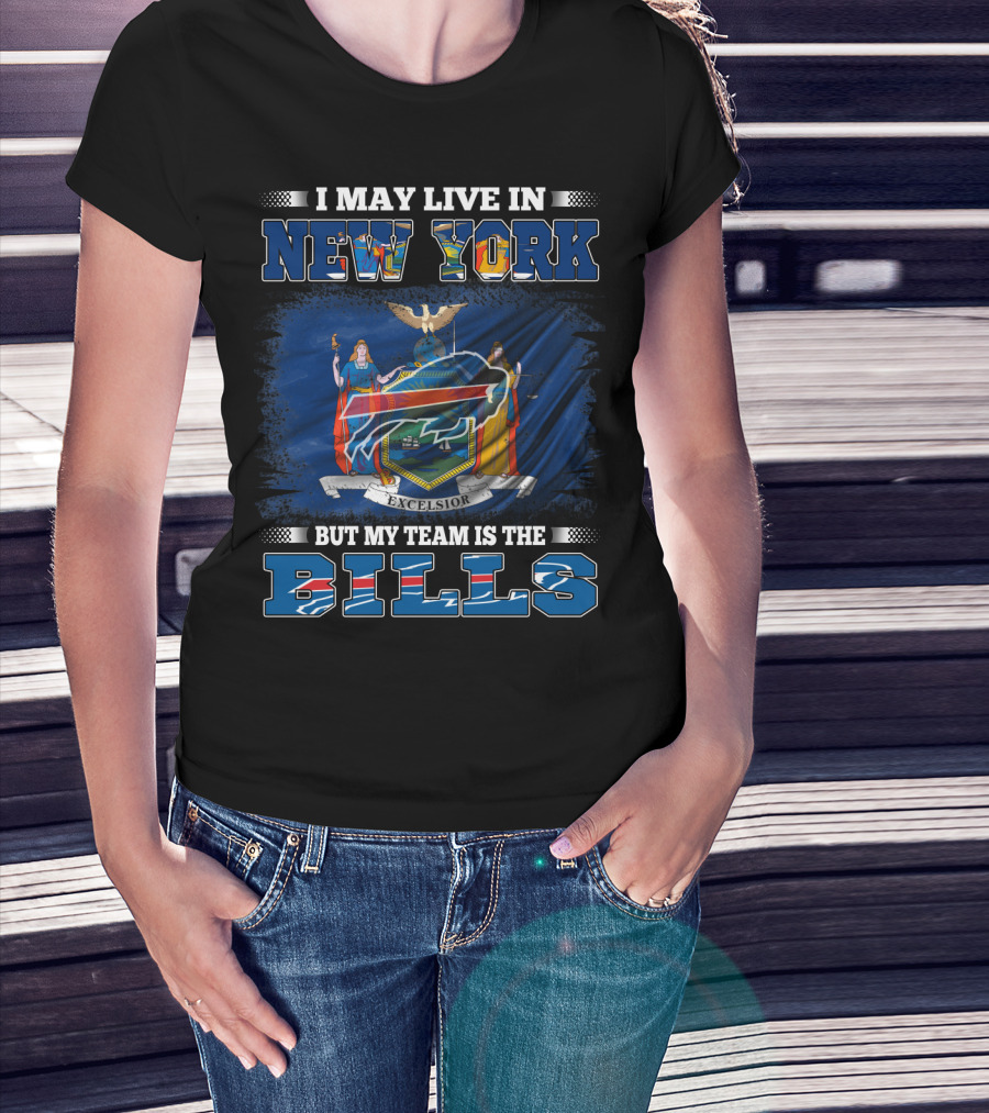 I May Live In New York But My Team Is The Bills New York Flag Buffalo Bills T-Shirt