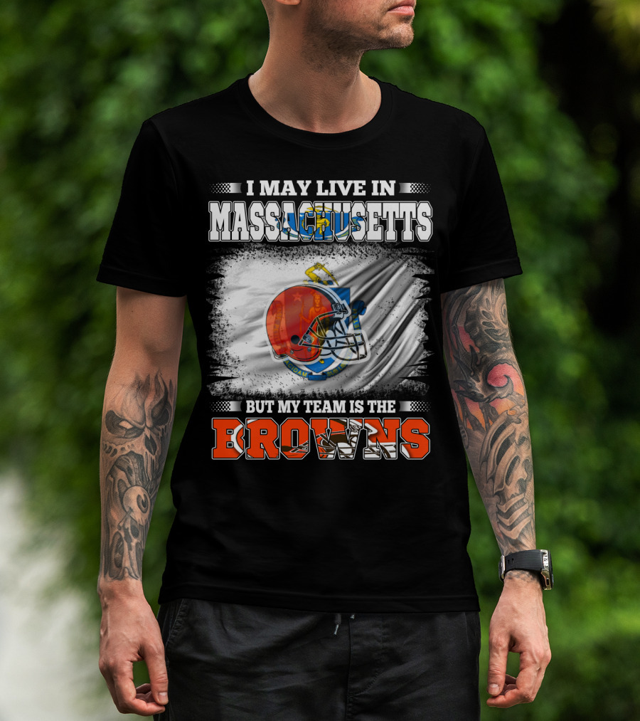 I May Live In Massachusetts But My Team Is The Browns Football Helmet T-Shirt