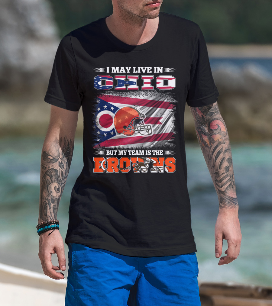 I May Live In Ohio But My Team Is The Browns Football Helmet Flag T-Shirt
