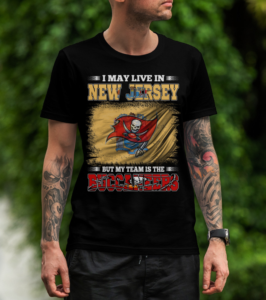 I May Live In New Jersey But My Team Is The Buccaneers Flag T-Shirt