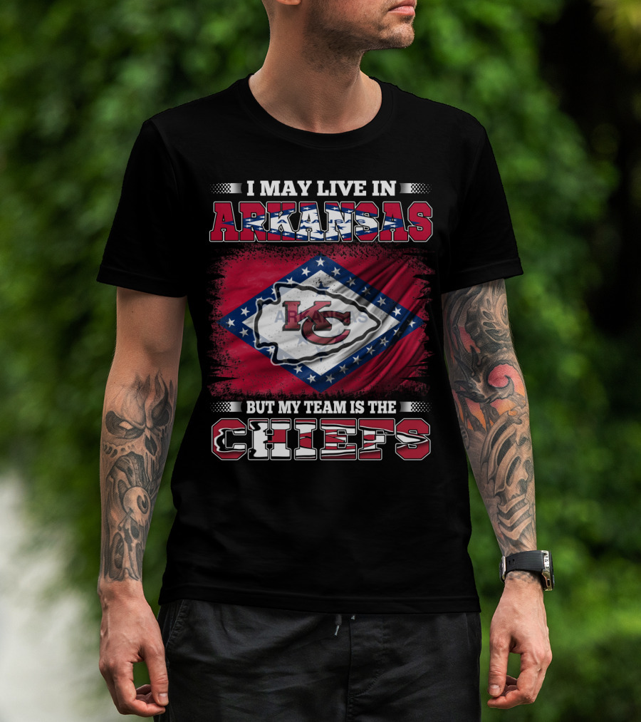 I May Live In Arkansas But My Team Is The Chiefs Kansas City KC Flag T-Shirt