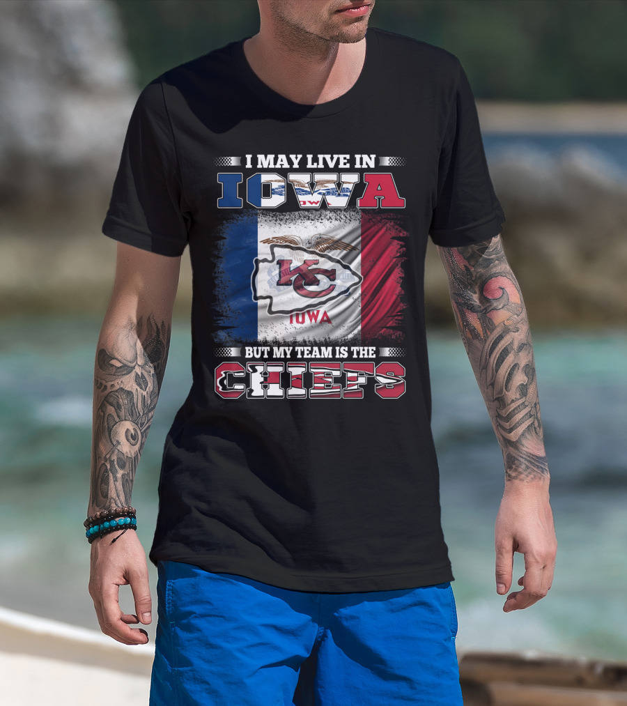 I May Live In Iowa But My Team Is The Chiefs Iowa Flag Kansas City Chiefs T-Shirt