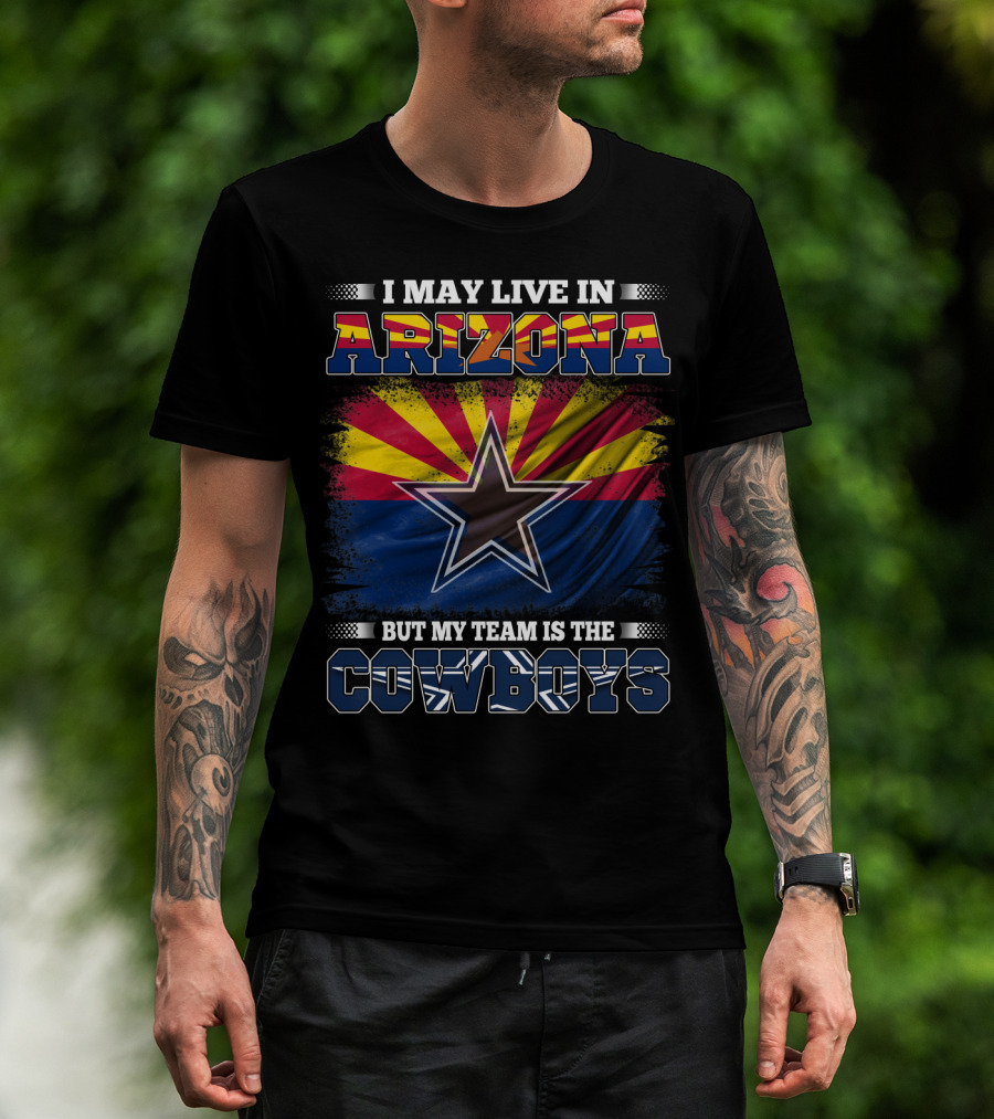 I May Live In Arizona But My Team Is The Cowboys Texas Star Arizona Flag T-Shirt