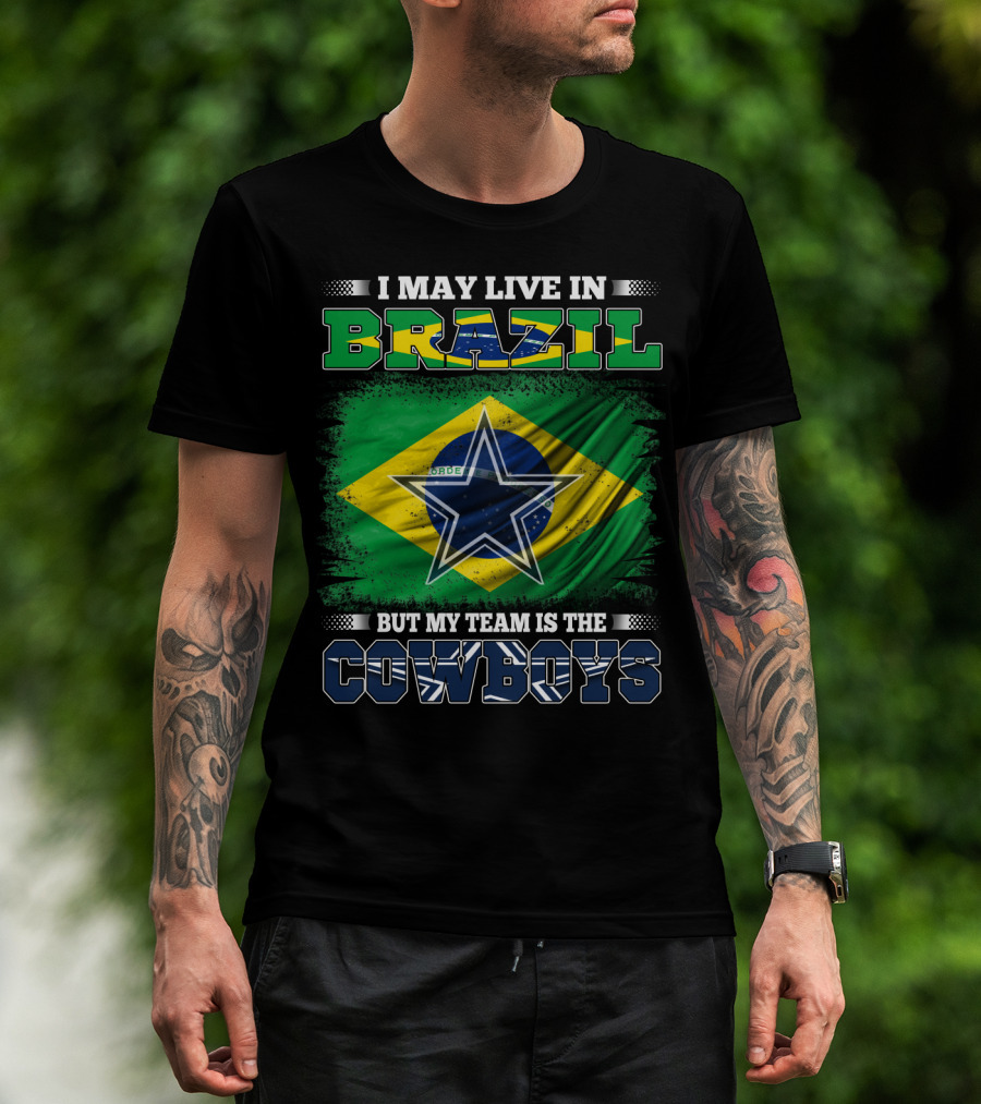 I May Live In Brazil But My Team Is The Cowboys Brazil Flag Star T-Shirt
