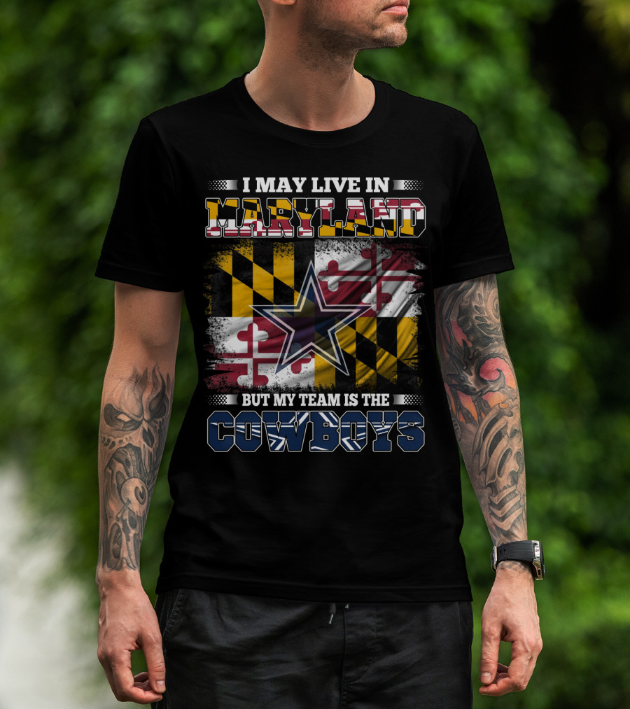I May Live In Maryland But My Team Is The Cowboys Maryland Flag Dallas Star T-Shirt