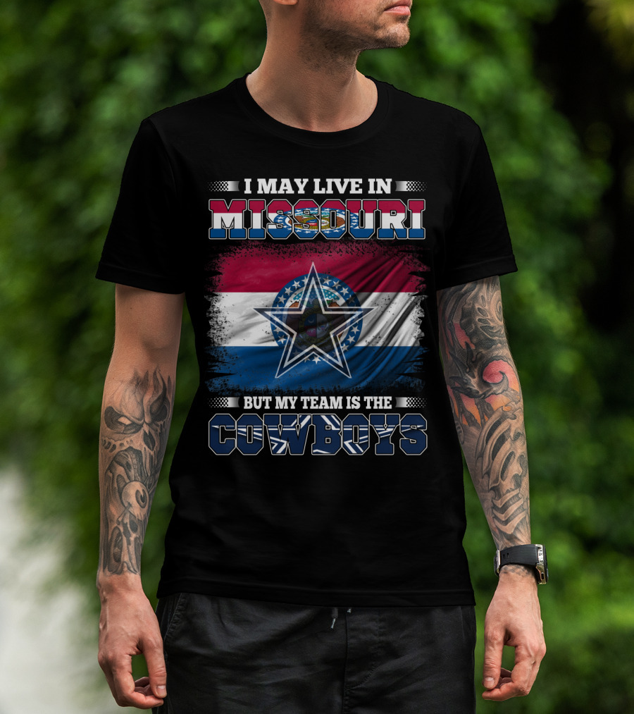I May Live In Missouri But My Team Is The Cowboys With Missouri Flag And Star T-Shirt