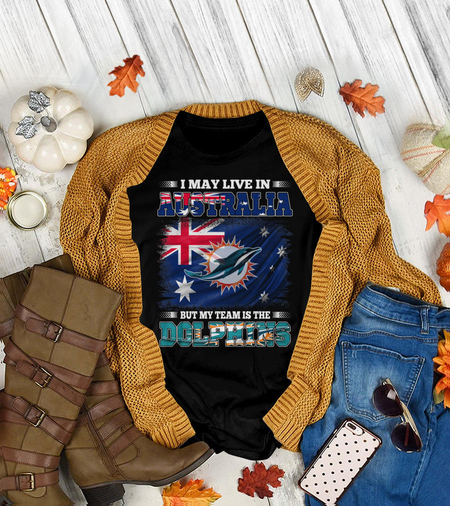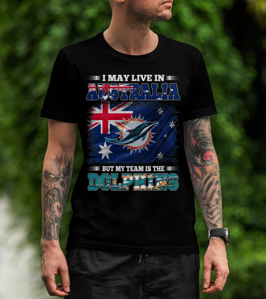 I May Live In Australia But My Team Is The Dolphins With Flag T-Shirt