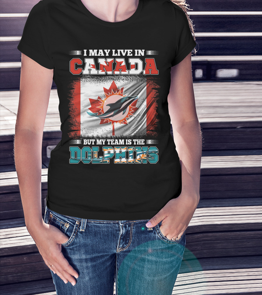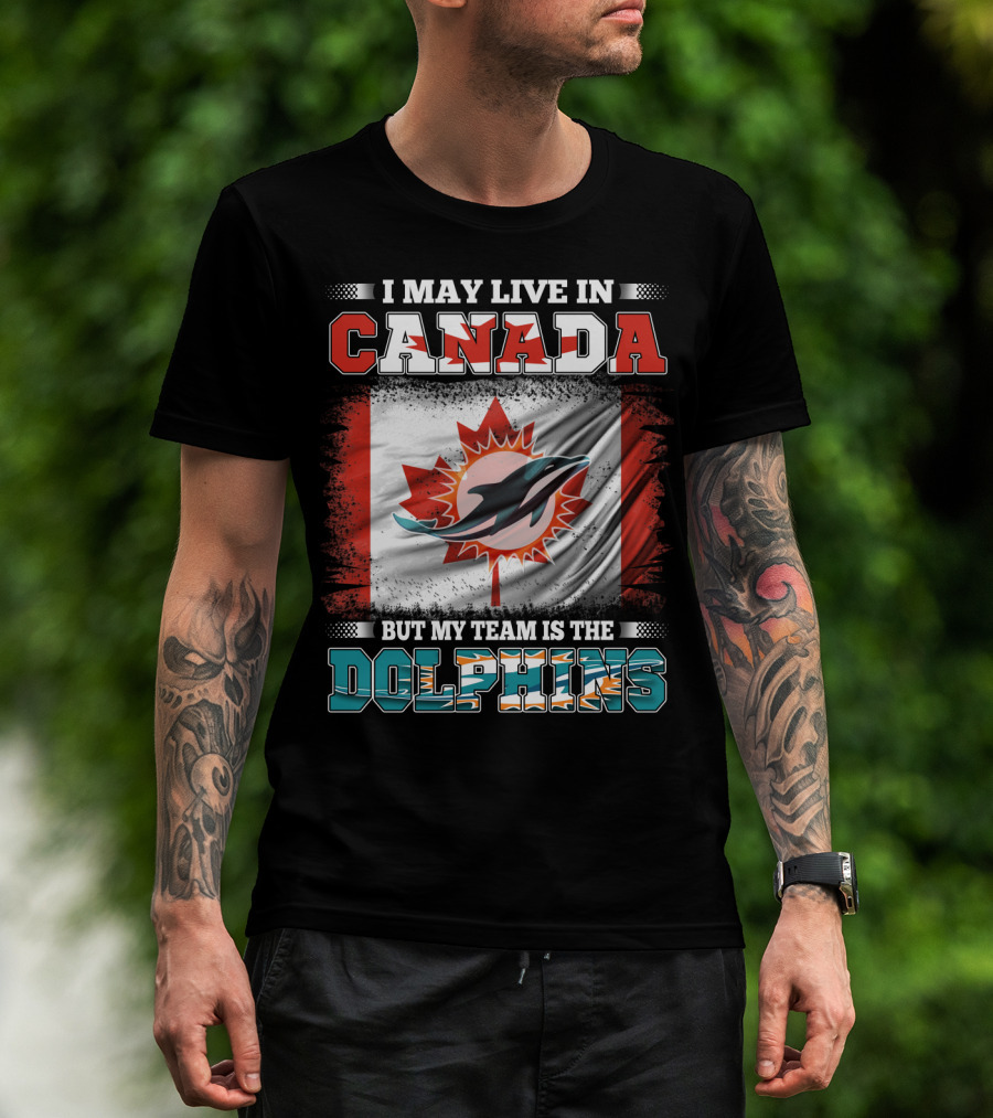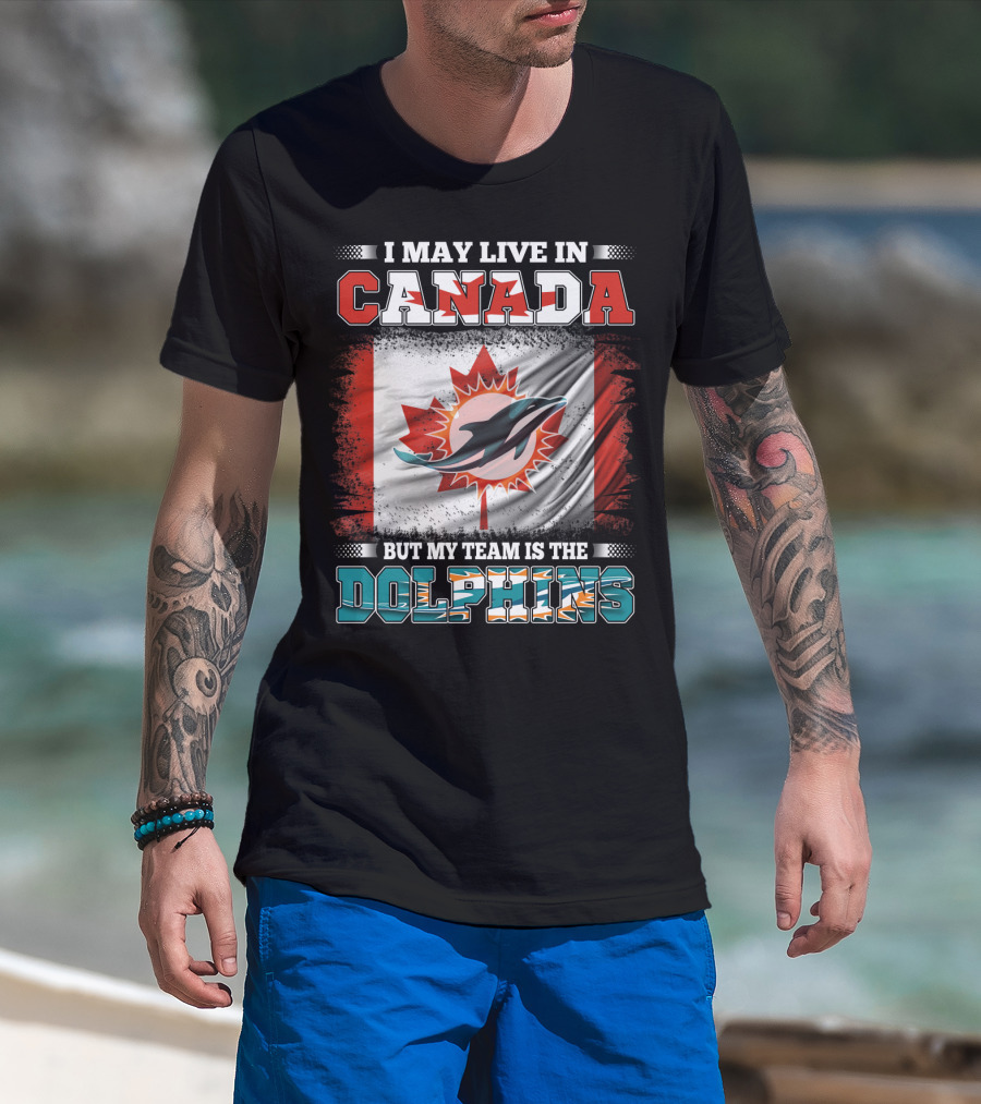 I May Live In Canada But My Team Is The Dolphins Canada Flag T-Shirt
