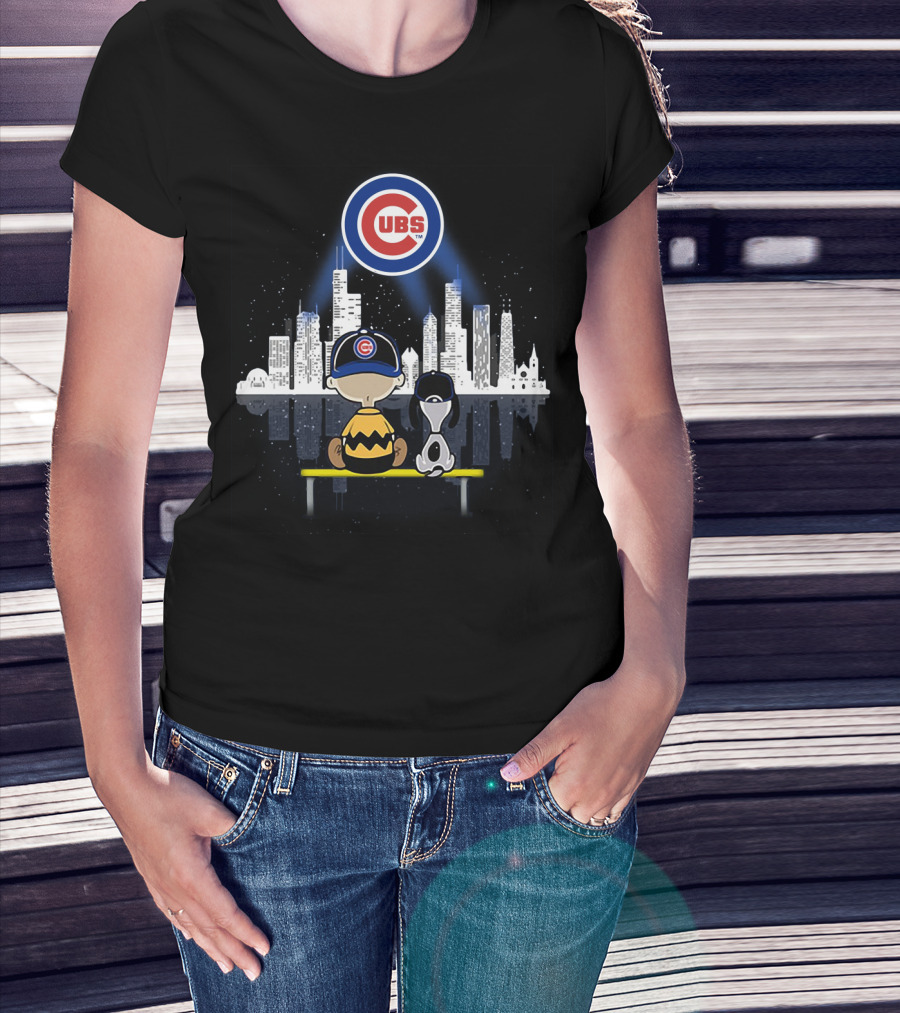 Charlie Brown And Snoopy Chicago Cubs City Skyline Cubs T-Shirt