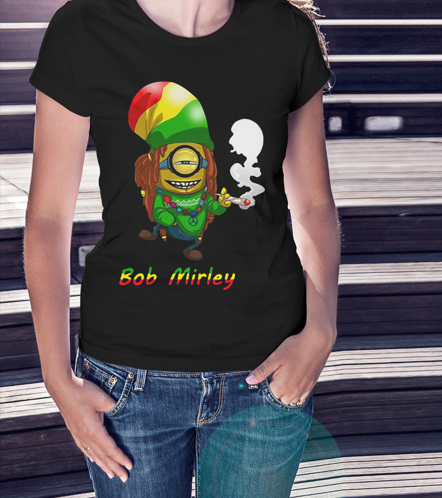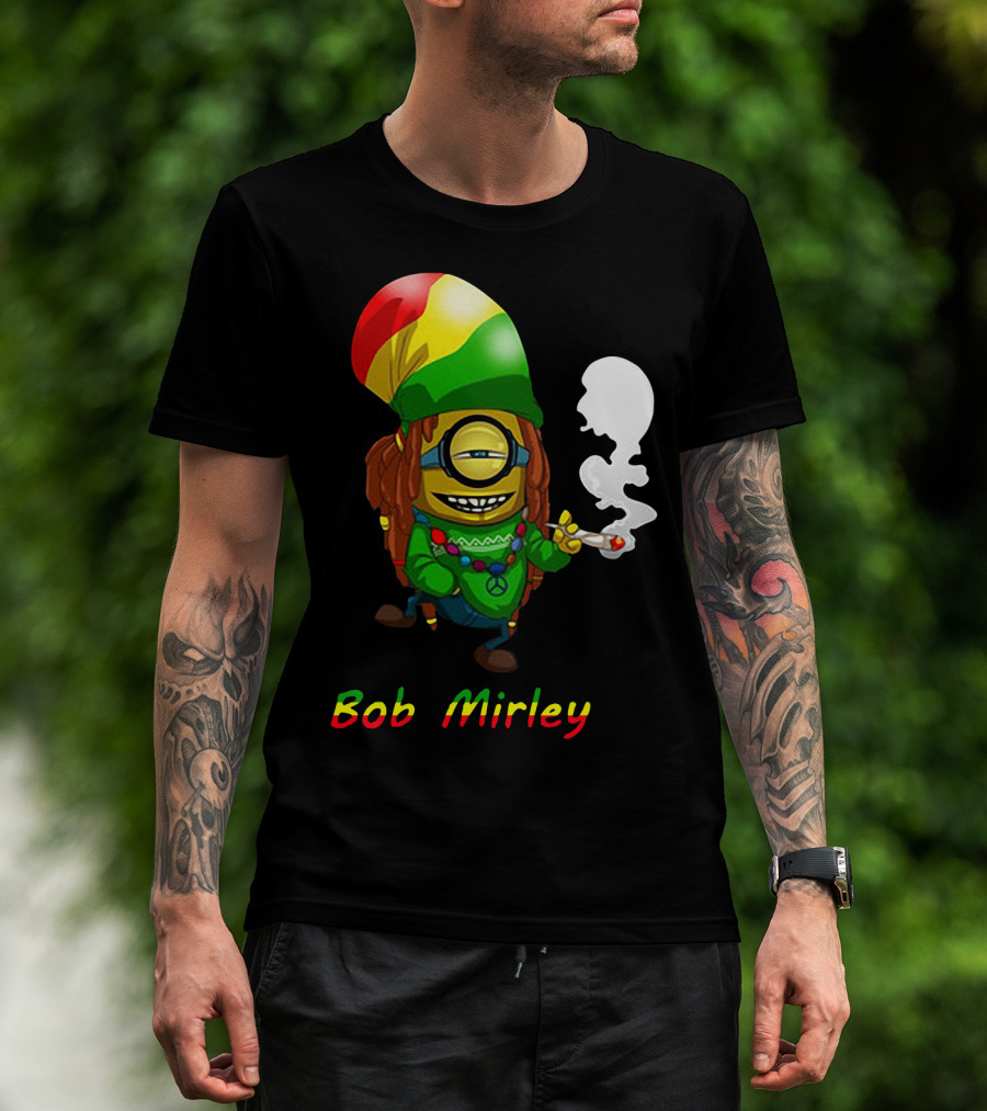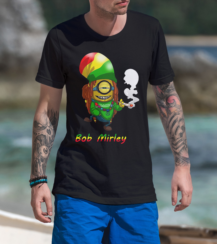 Bob Mirley Minion With Rasta Colors Smoking And Peace Necklace T-Shirt