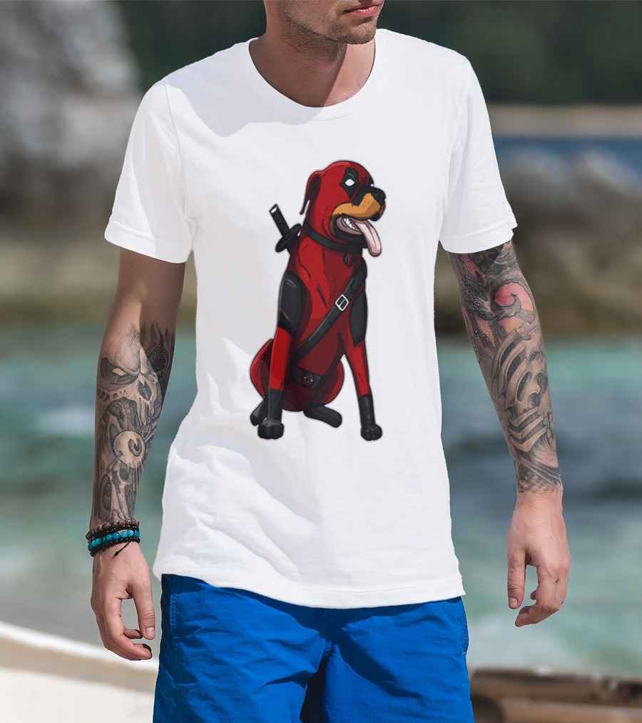 Deadpool Rottweiler Comic Style Crossover Superhero Dog T-Shirt