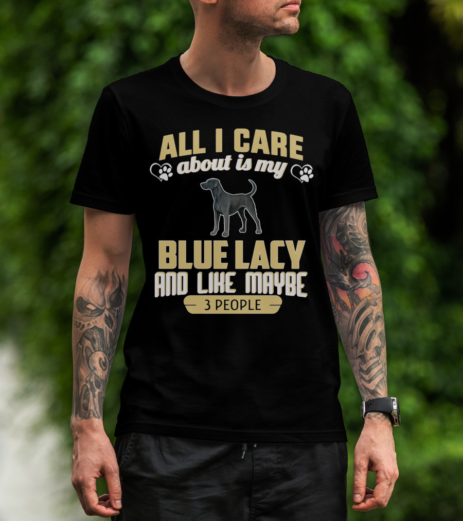 The All I Care About Is My Blue Lacy And Like Maybe Three People T-shirt is designed for everyday wear and a consistent fit. Fabric is pre-shrunk ring-spun cotton with durable stitching. See the size chart below for exact measurements.