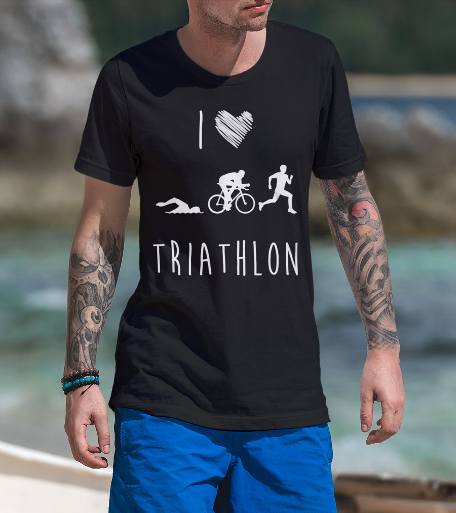 I Love Triathlon Featuring Swim Bike Run Iconography T-Shirt
