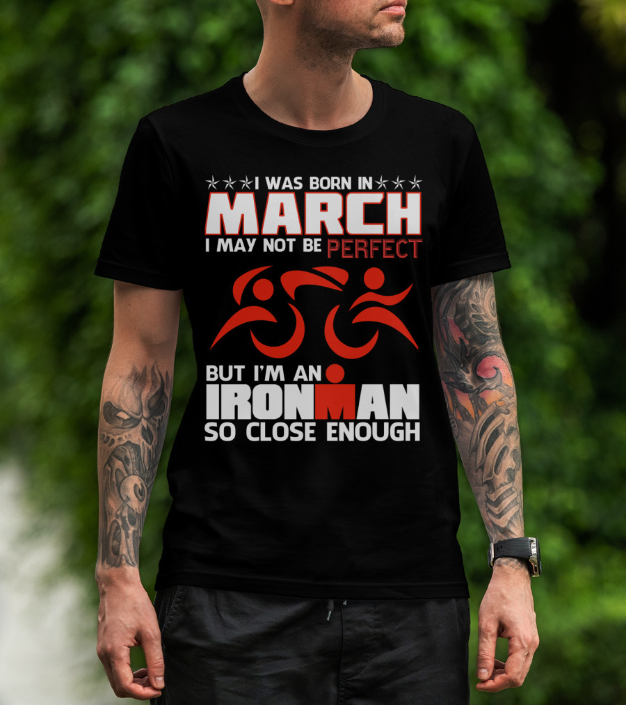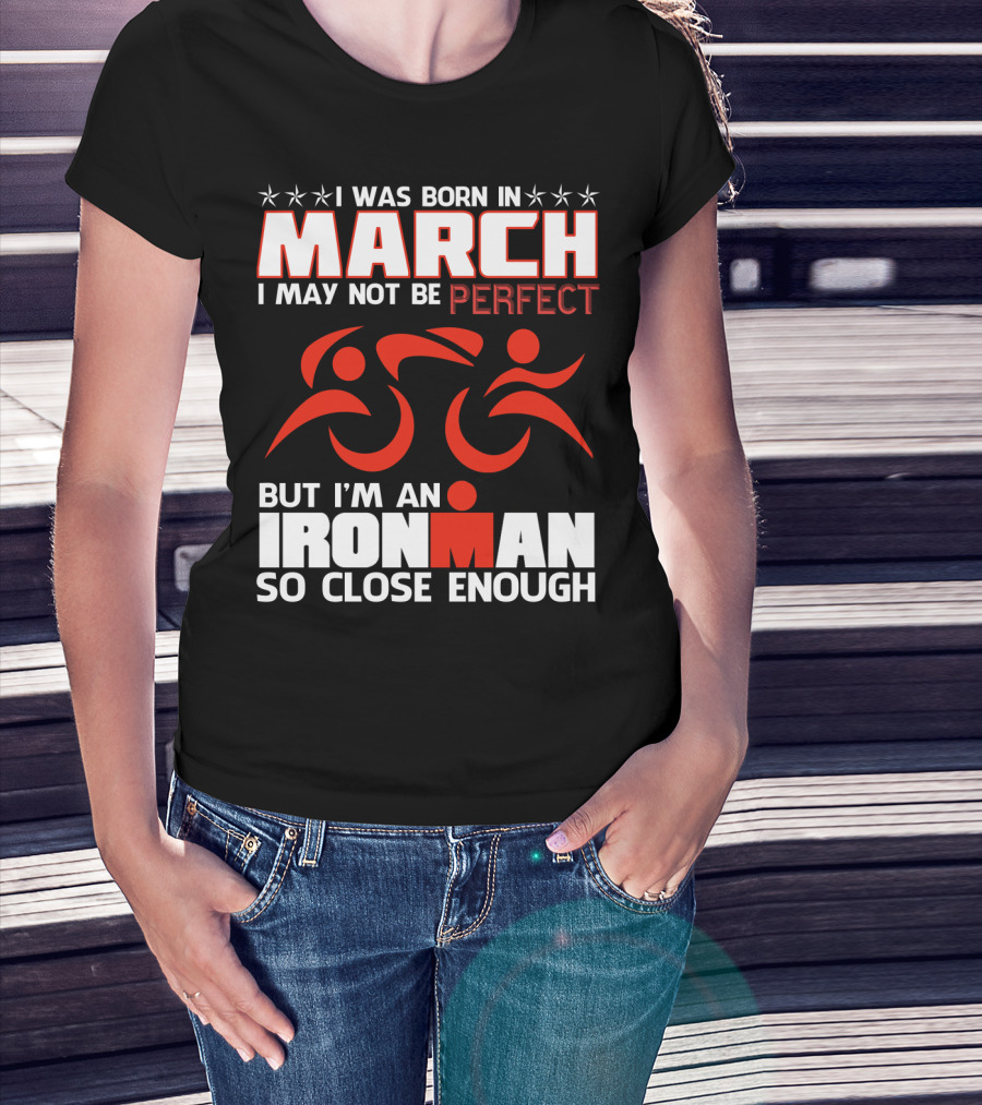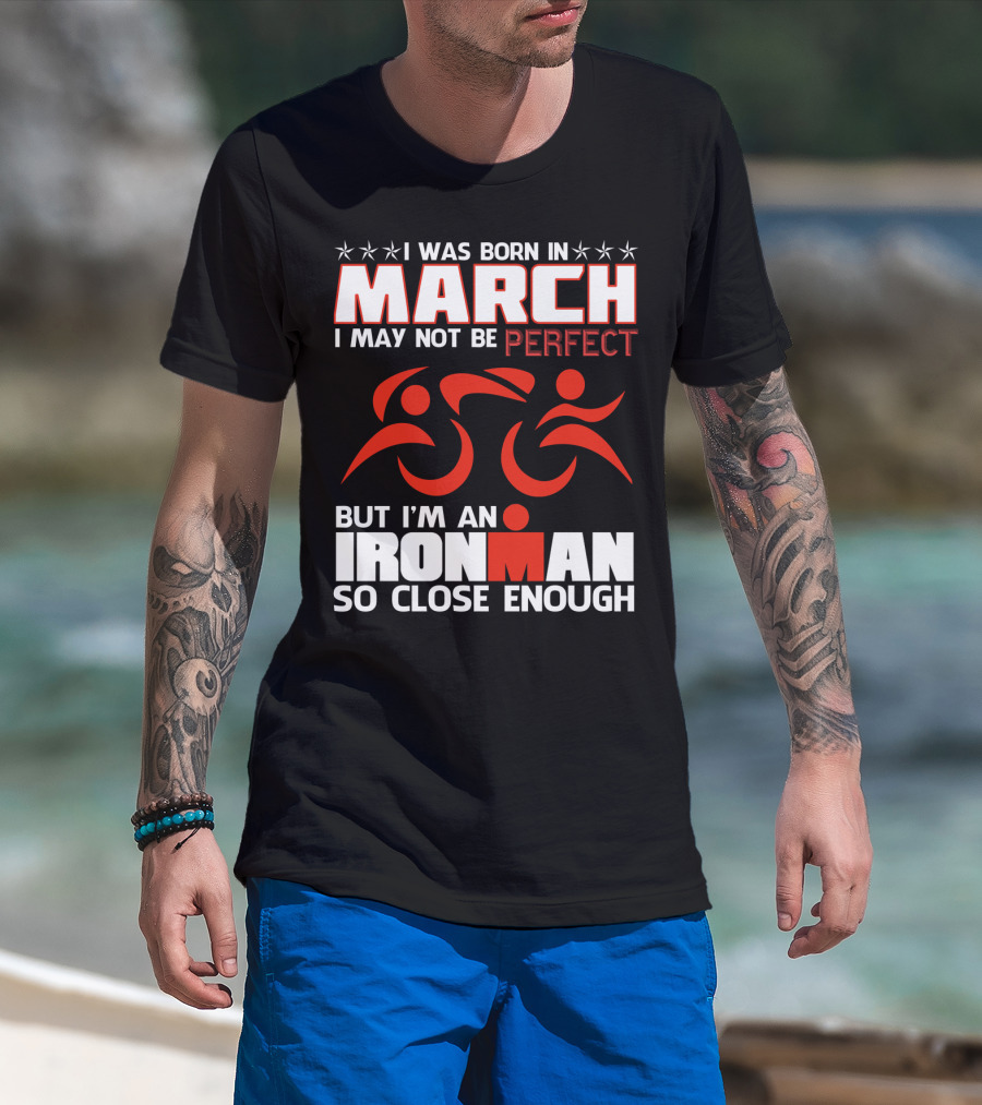 Born In March Not Perfect But Ironman So Close Enough T-Shirt