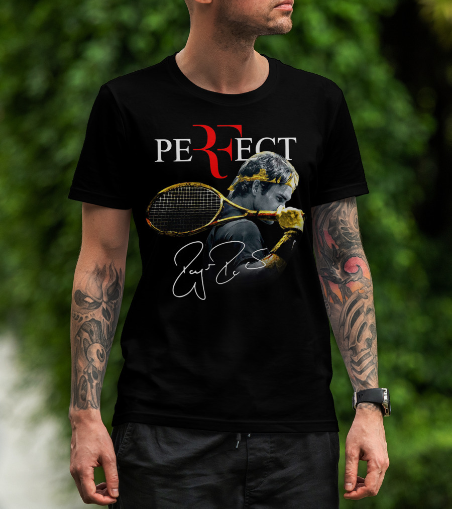 Roger Federer Perfect Tennis Tribute Racket Signature Iconic Moment T-Shirt