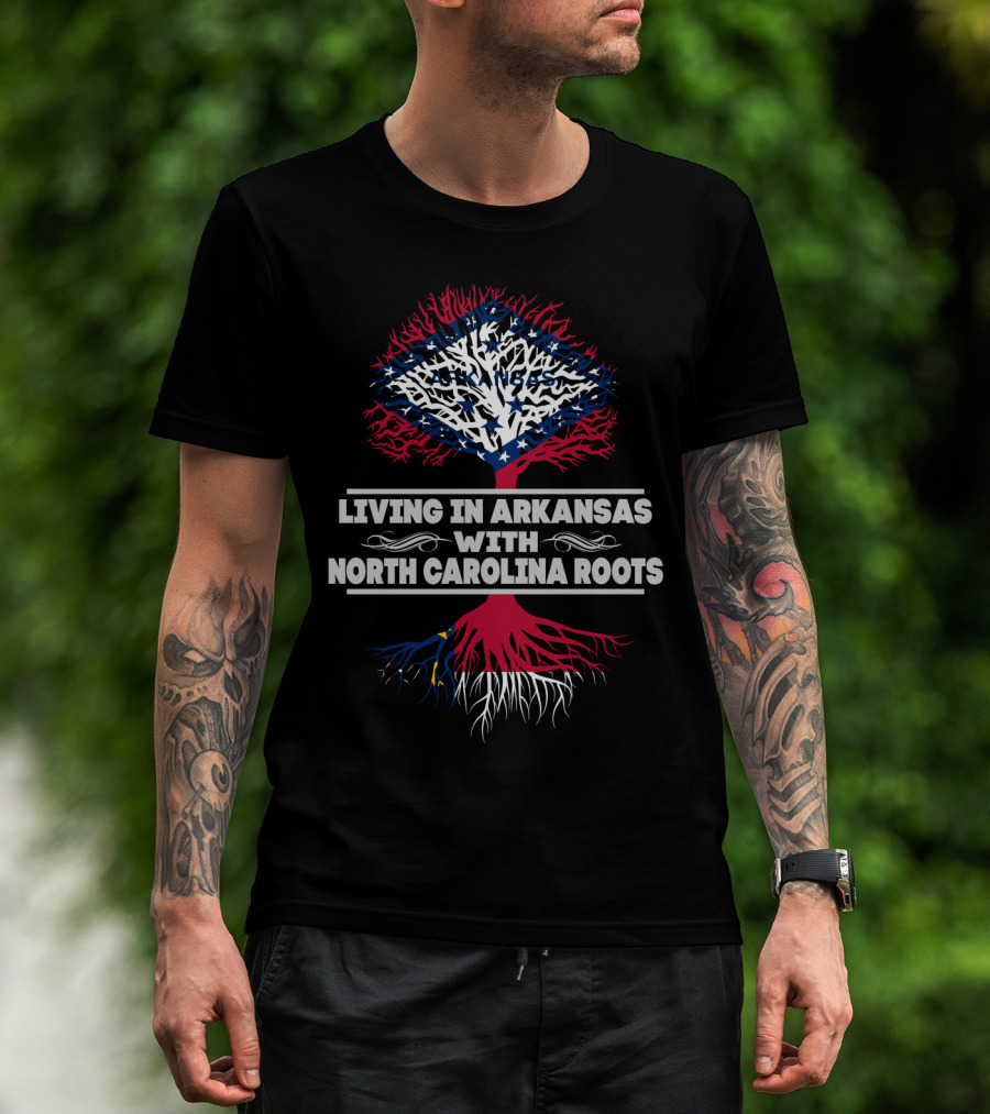 Living In Arkansas With North Carolina Roots Tree Design With State T-Shirt