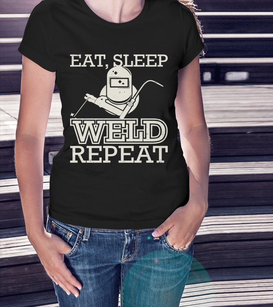 Eat Sleep Weld Repeat Funny Welder With Welding Helmet T-Shirt