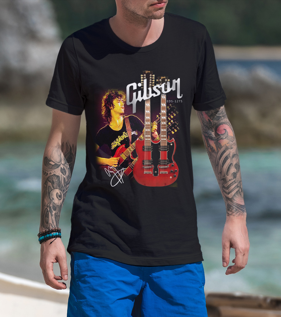 Gibson EDS-1275 Ajimmypage Signature Double Neck Guitar Music Scene T-Shirt