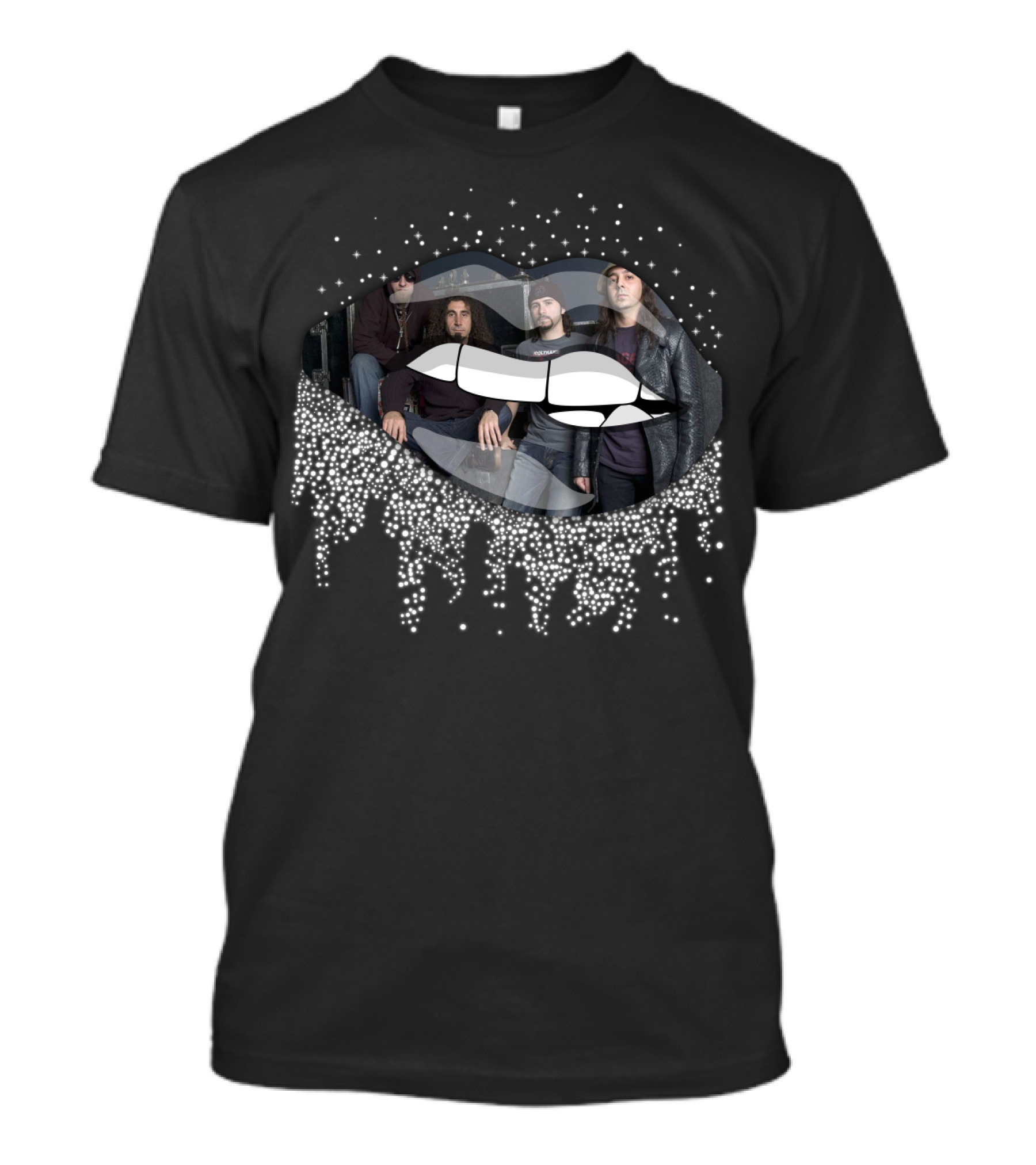 System Of A Down Band Portrait With Glittering Lips T-Shirt