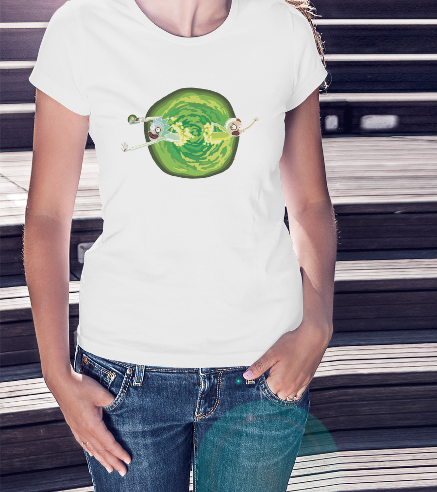 Rick And Morty Animated Portal Gun Adventure Scene T-Shirt