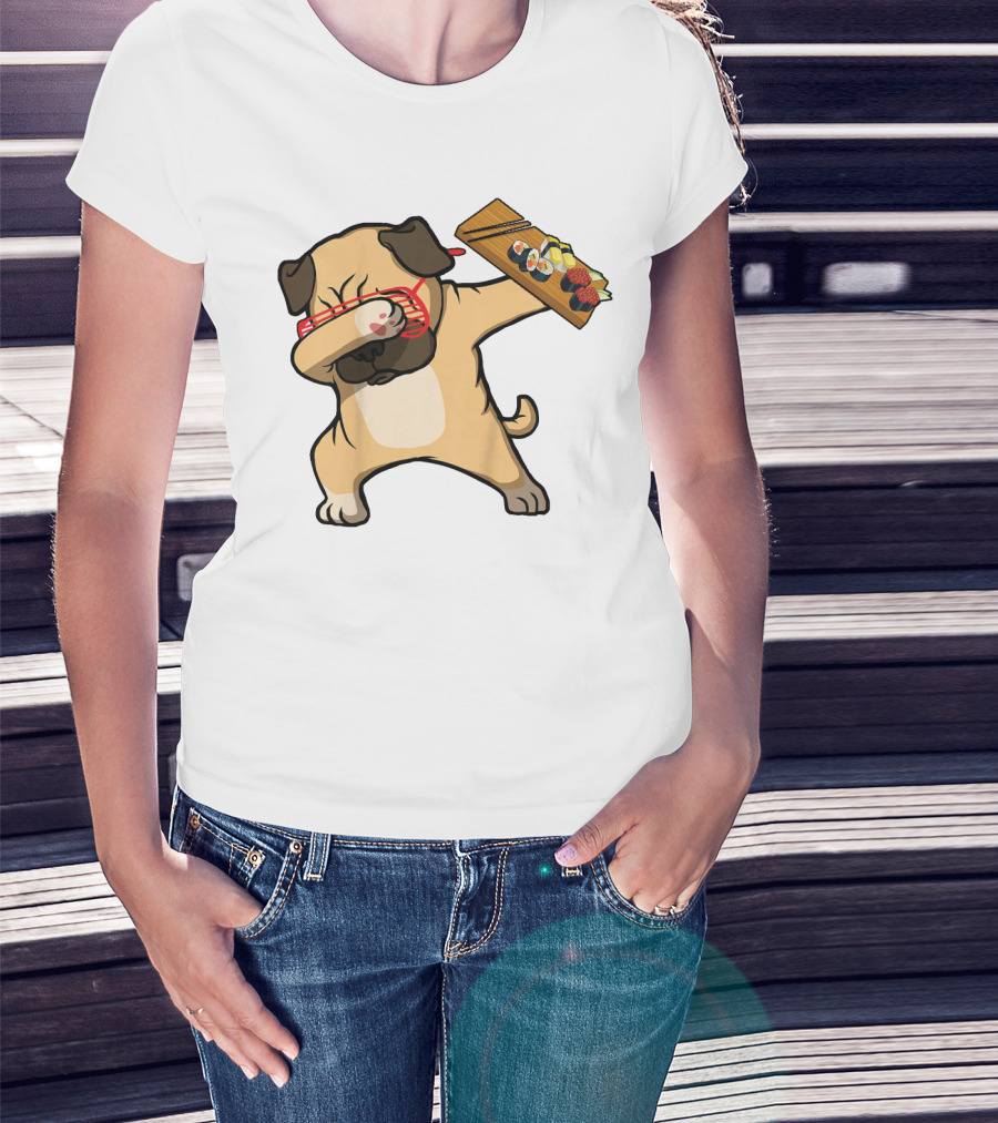 Dabbing Pug With Sushi Plate And Chopstick Glasses T-Shirt