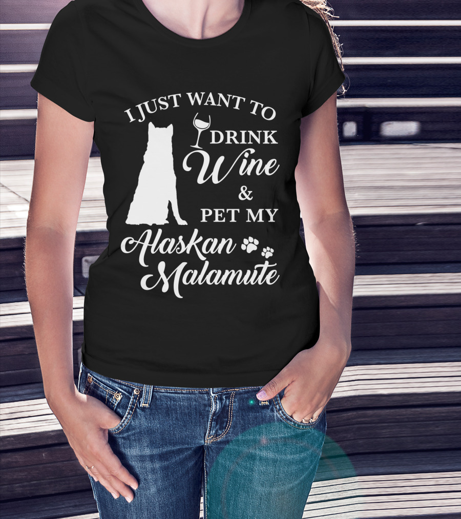 I JUST WANT TO DRINK WINE AND PET MY ALASKAN MALAMUTE T-Shirt