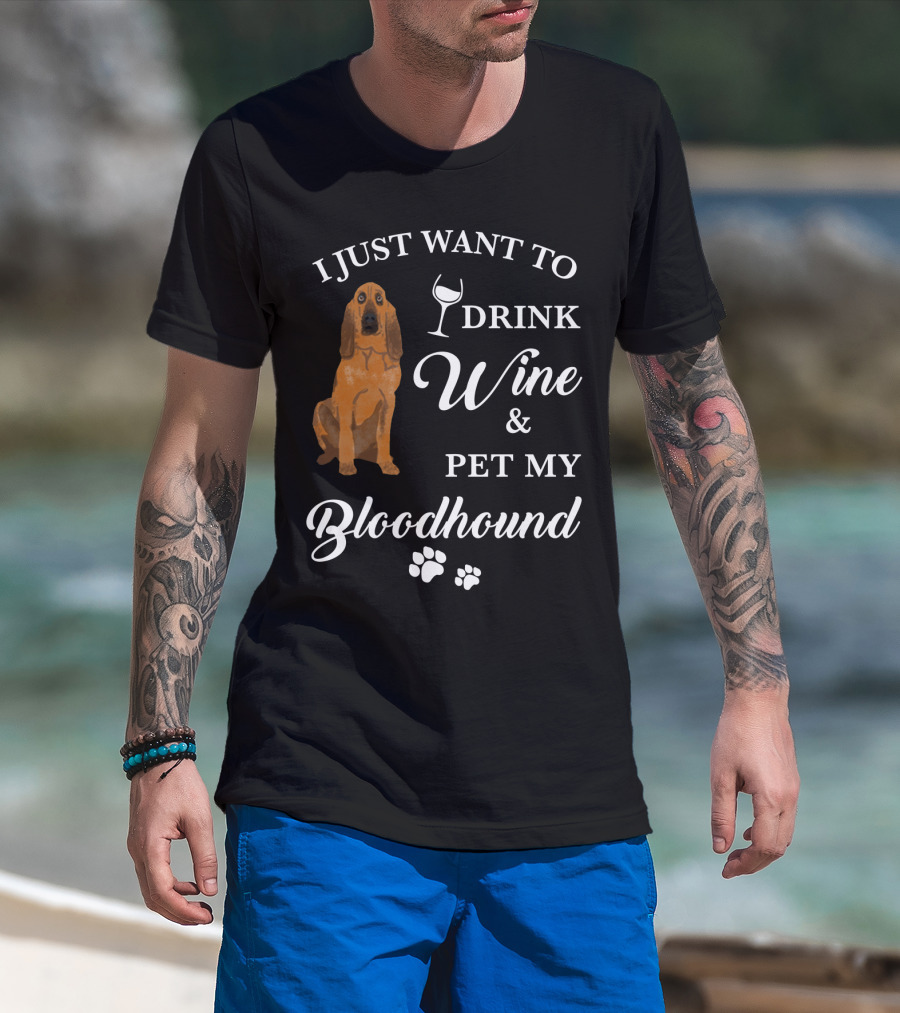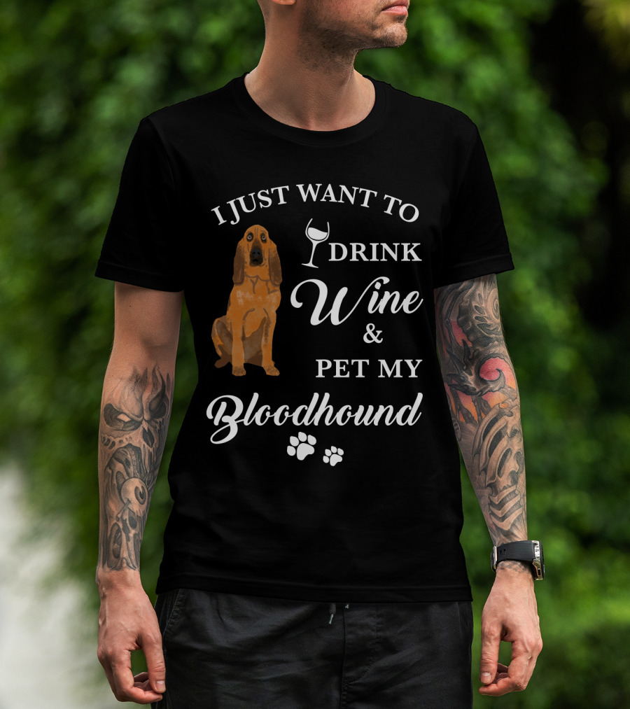 I JUST WANT TO DRINK WINE AND PET MY BLOODHOUND WITH PAW PRINTS T-Shirt