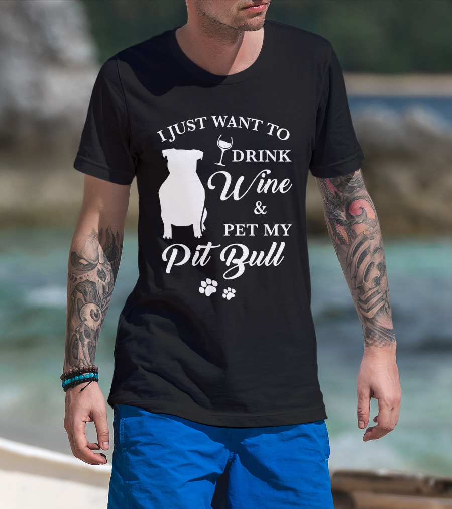 I JUST WANT TO DRINK WINE AND PET MY PIT BULL T-Shirt