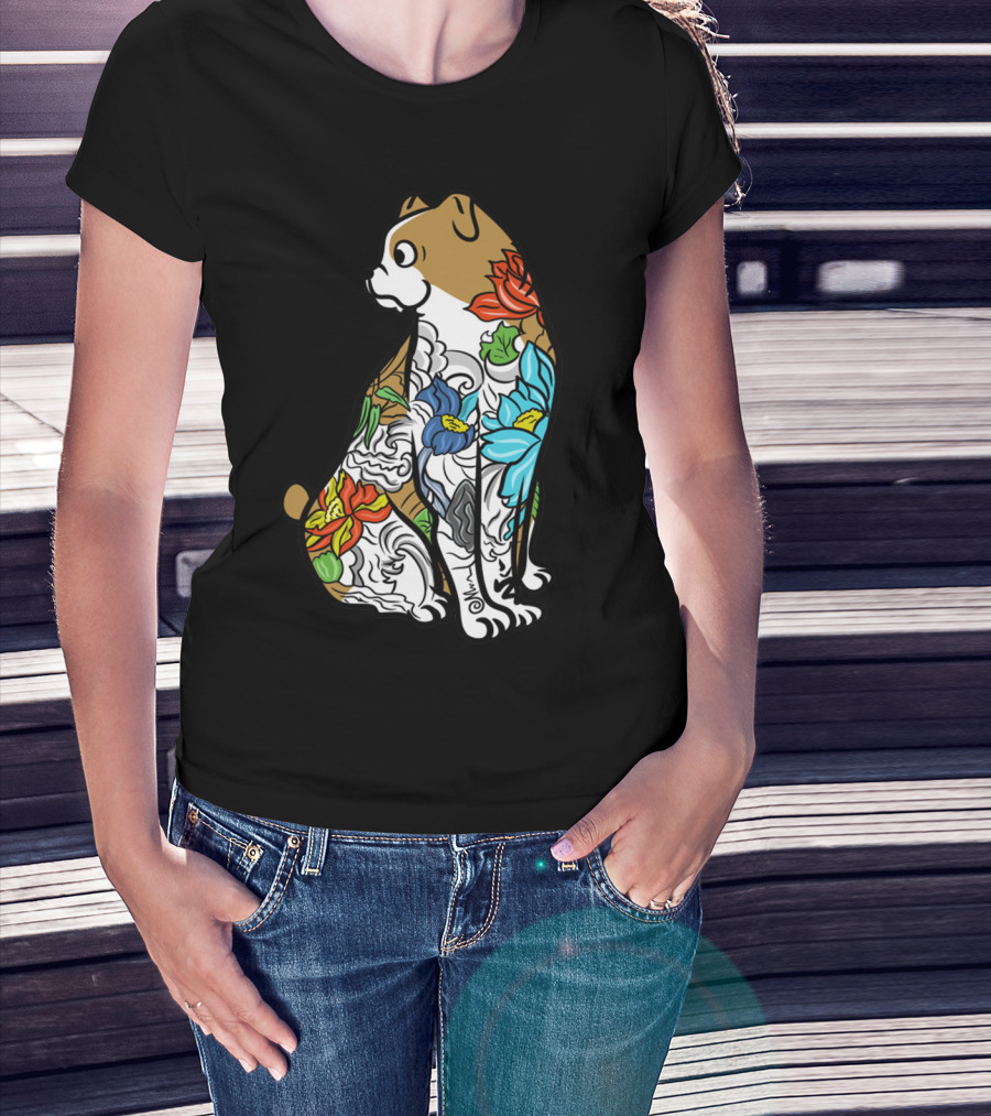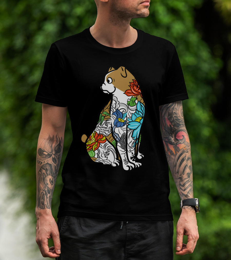 BULLDOG TATTOO FLORAL PATTERN COLORFUL T-Shirt