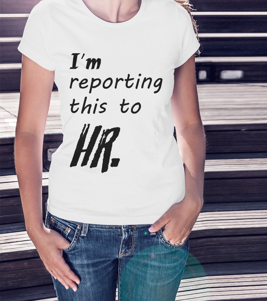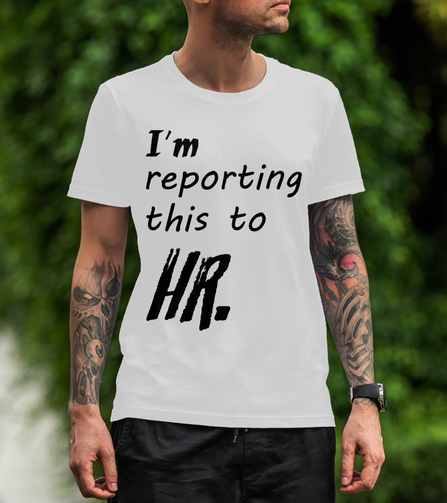 The I’m Reporting This to HR T-shirt is designed for everyday wear and a consistent fit. Fabric is pre-shrunk ring-spun cotton with durable stitching. See the size chart below for exact measurements.