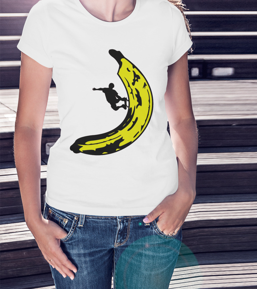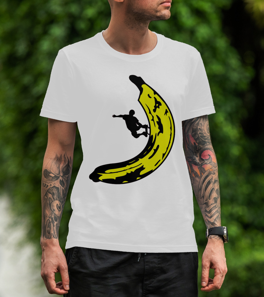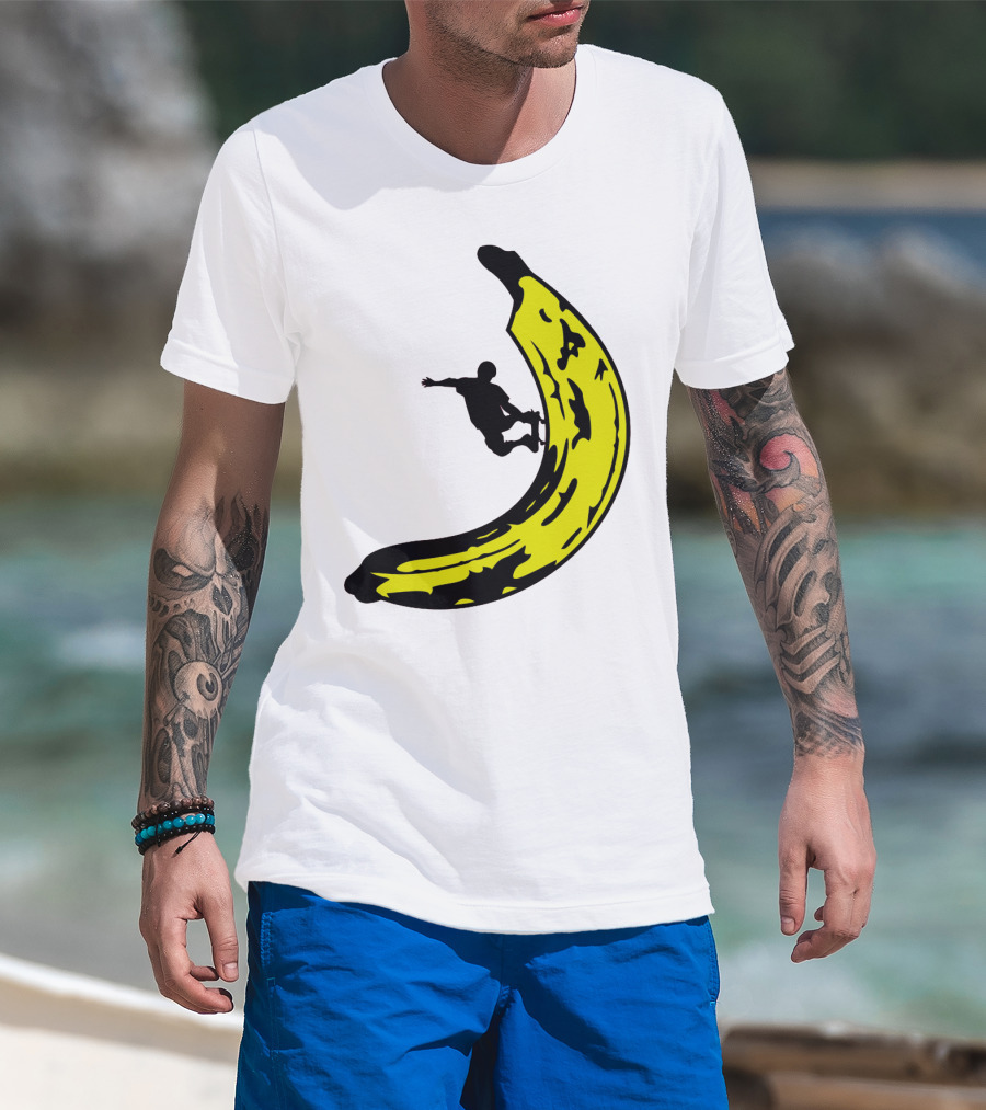 Banana Shaped Skateboard Ramp With Silhouette Skater Jumping T-Shirt