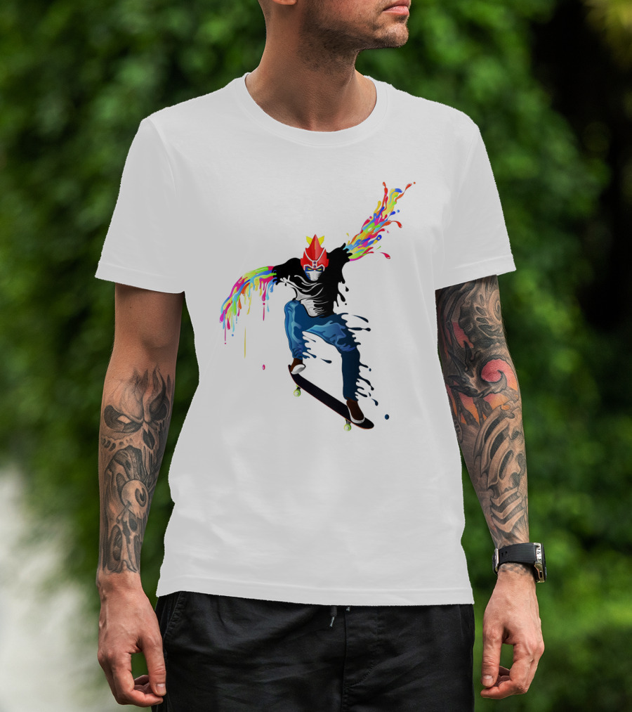 The Voltes V Skater Color Splash Jump T-shirt is designed for everyday wear and a consistent fit. Fabric is pre-shrunk ring-spun cotton with durable stitching. See the size chart below for exact measurements.