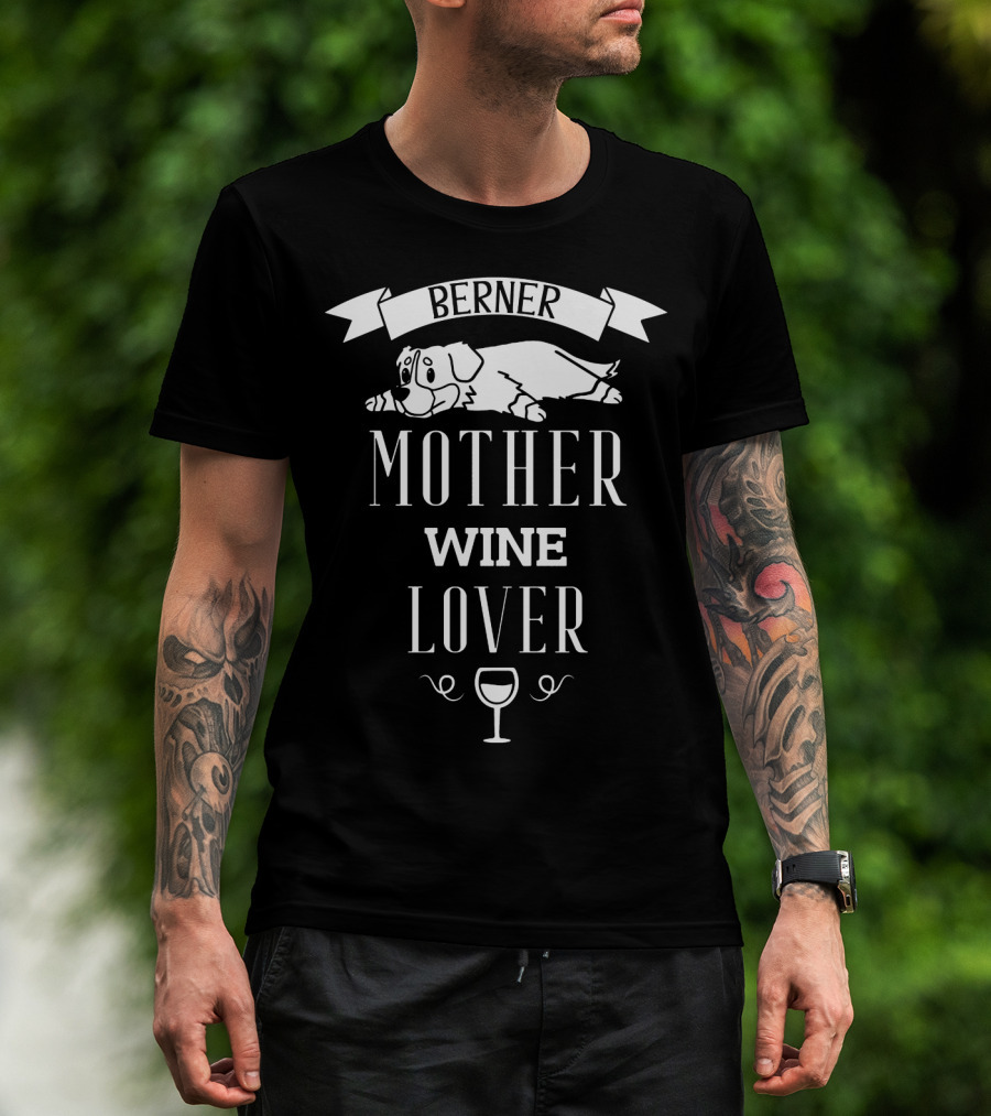 The Berner Dog Mother Wine Lover With Sleeping Puppy and Wine Glass T-shirt is designed for everyday wear and a consistent fit. Fabric is pre-shrunk ring-spun cotton with durable stitching. See the size chart below for exact measurements.