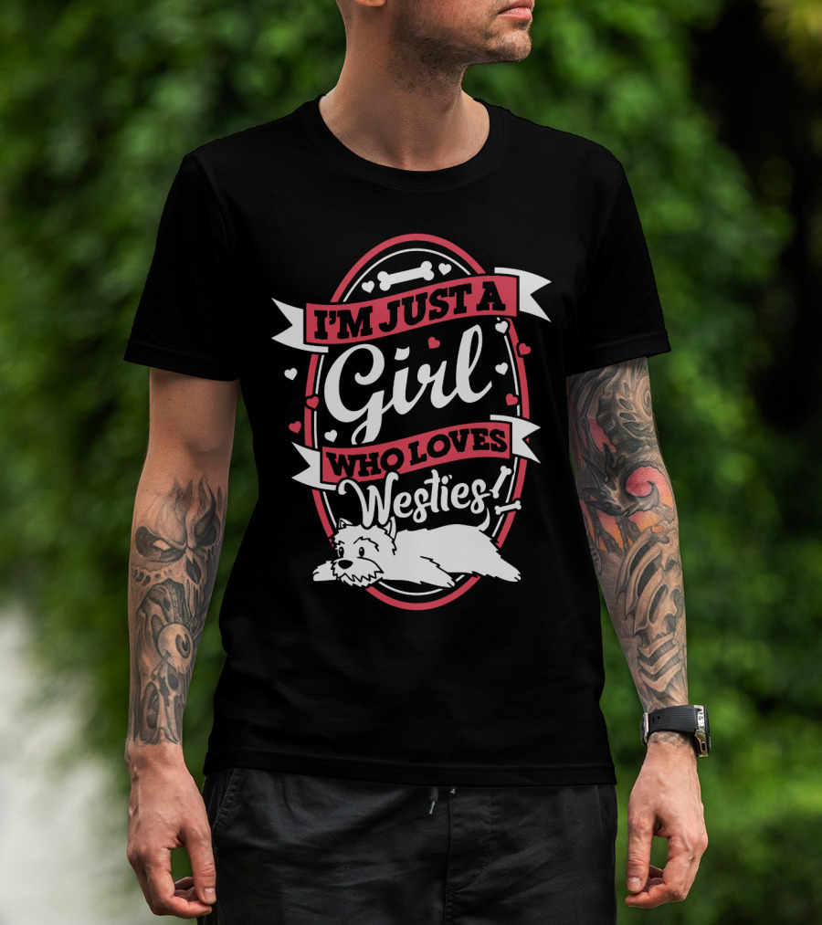 I'M JUST A GIRL WHO LOVES WESTIES WITH HEARTS AND BONES T-Shirt