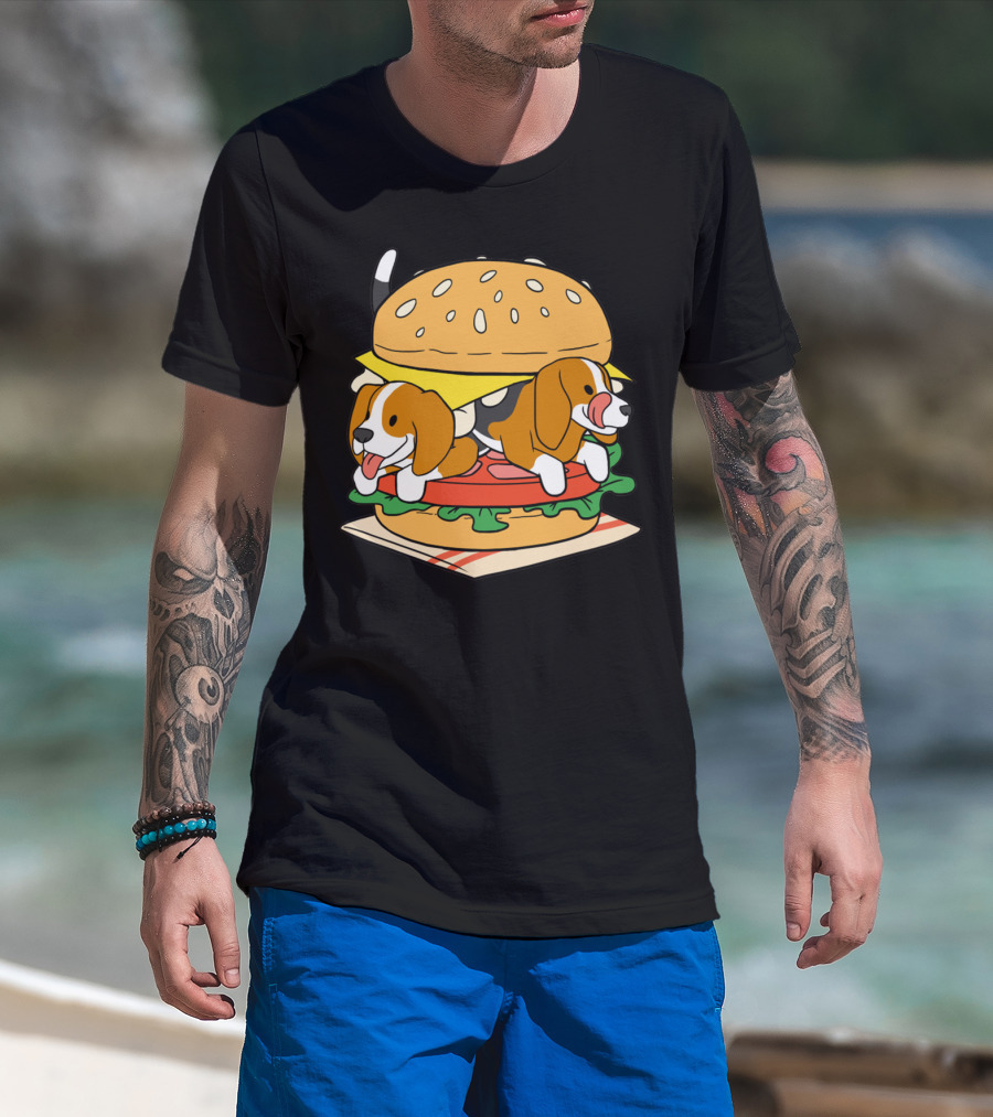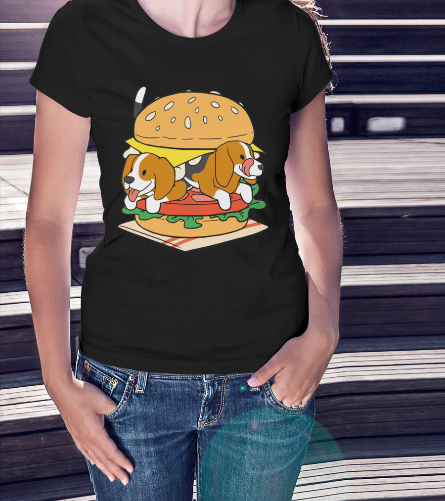 Beagle Burger Cuteness With Cheese, Lettuce, And Tomato T-Shirt