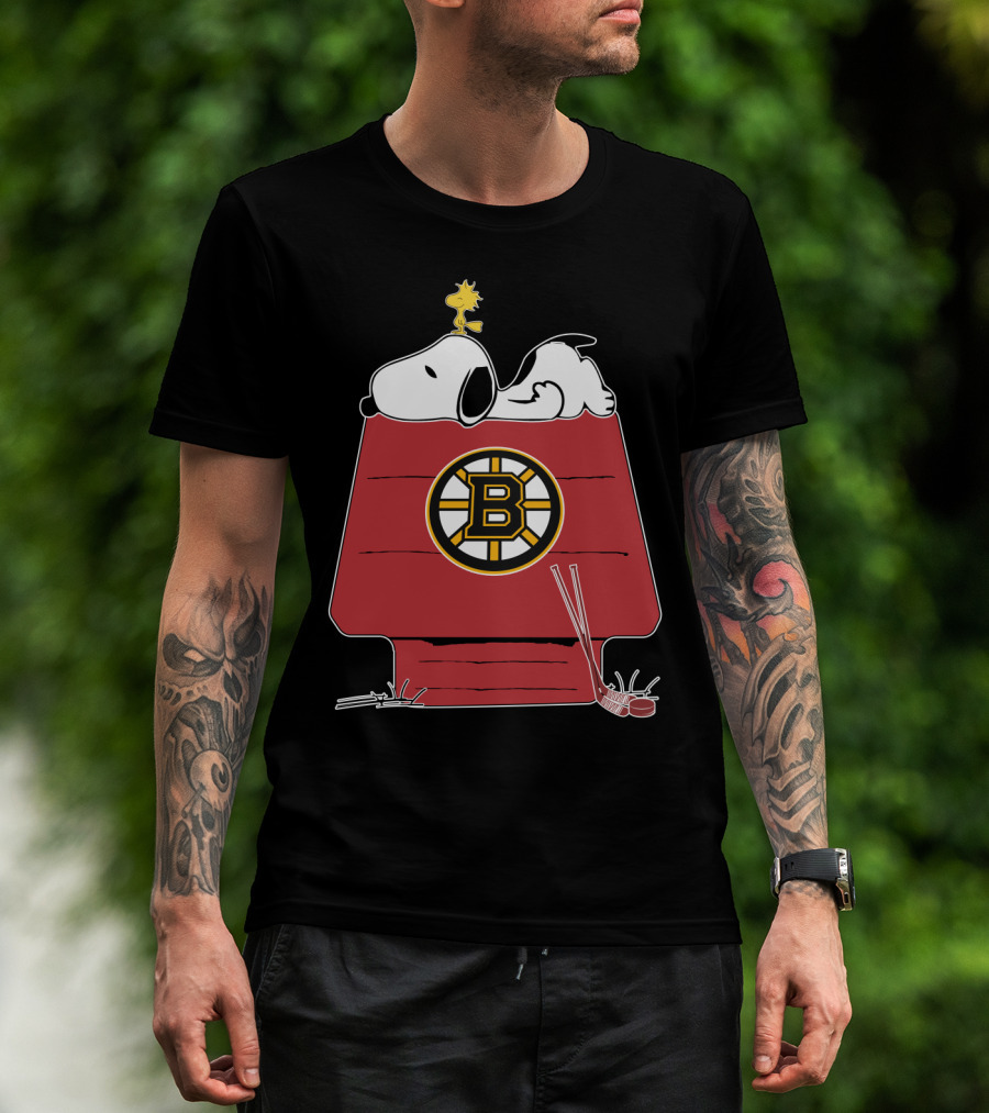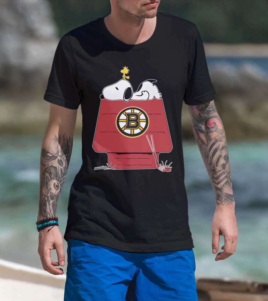 Snoopy Woodstock Boston Bruins Hockey Doghouse NHL Collaboration T-Shirt