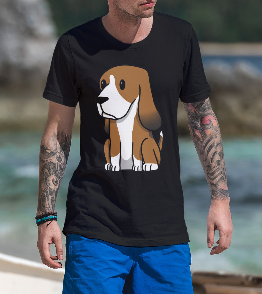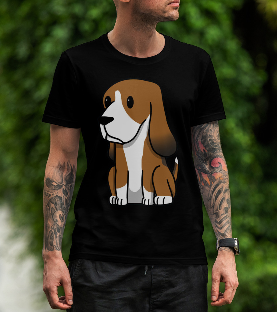 Basset Hound Cute Cartoon Brown And White Dog Sitting T-Shirt