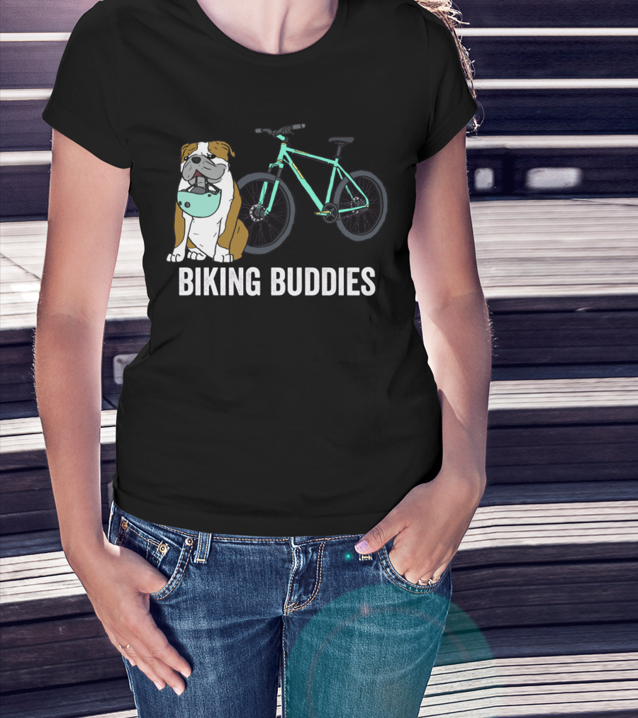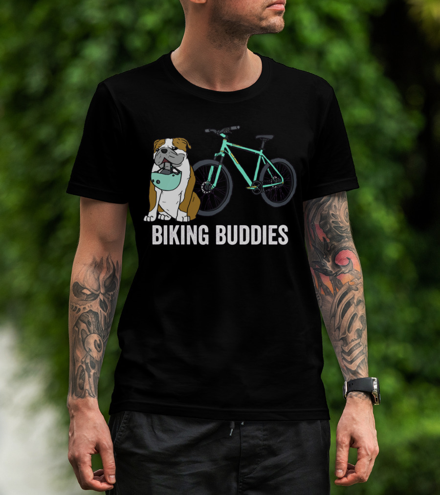 Biking Buddies Bulldog With Helmet And Bicycle T-Shirt