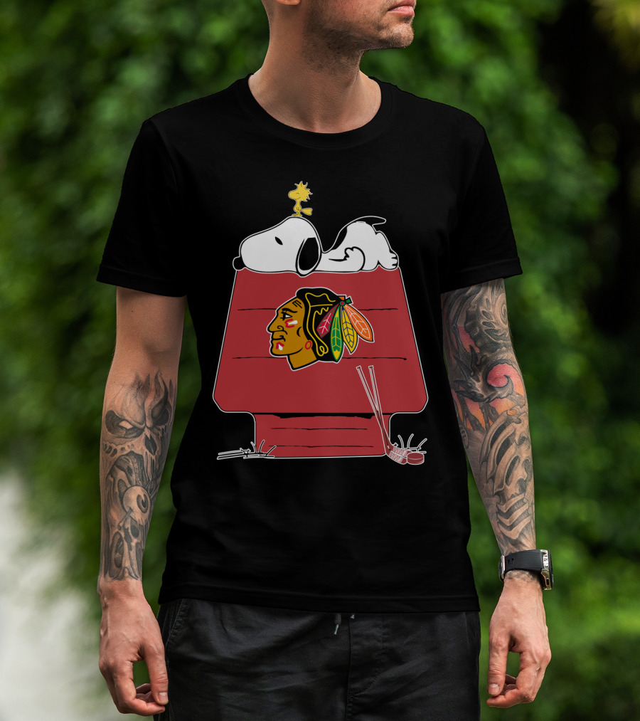 Chicago Blackhawks Snoopy Doghouse Peanuts Hockey T-Shirt