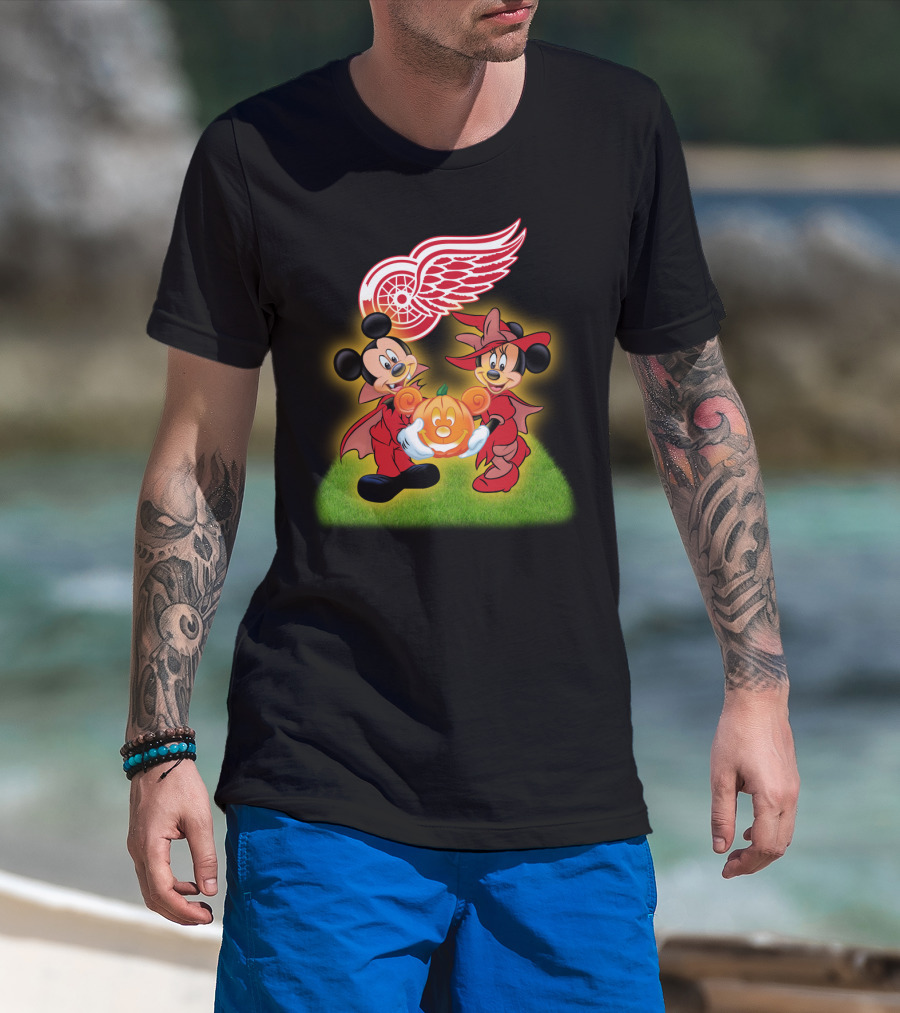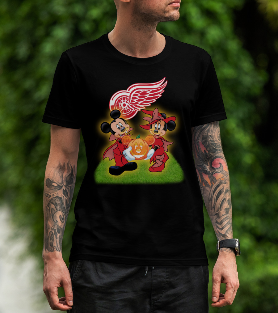 Detroit Red Wings Mickey And Minnie Halloween Pumpkin T-Shirt
