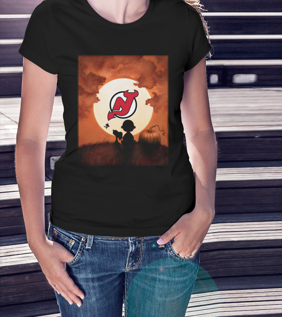 New Jersey Devils Halloween Moon Pumpkin Scene T-Shirt